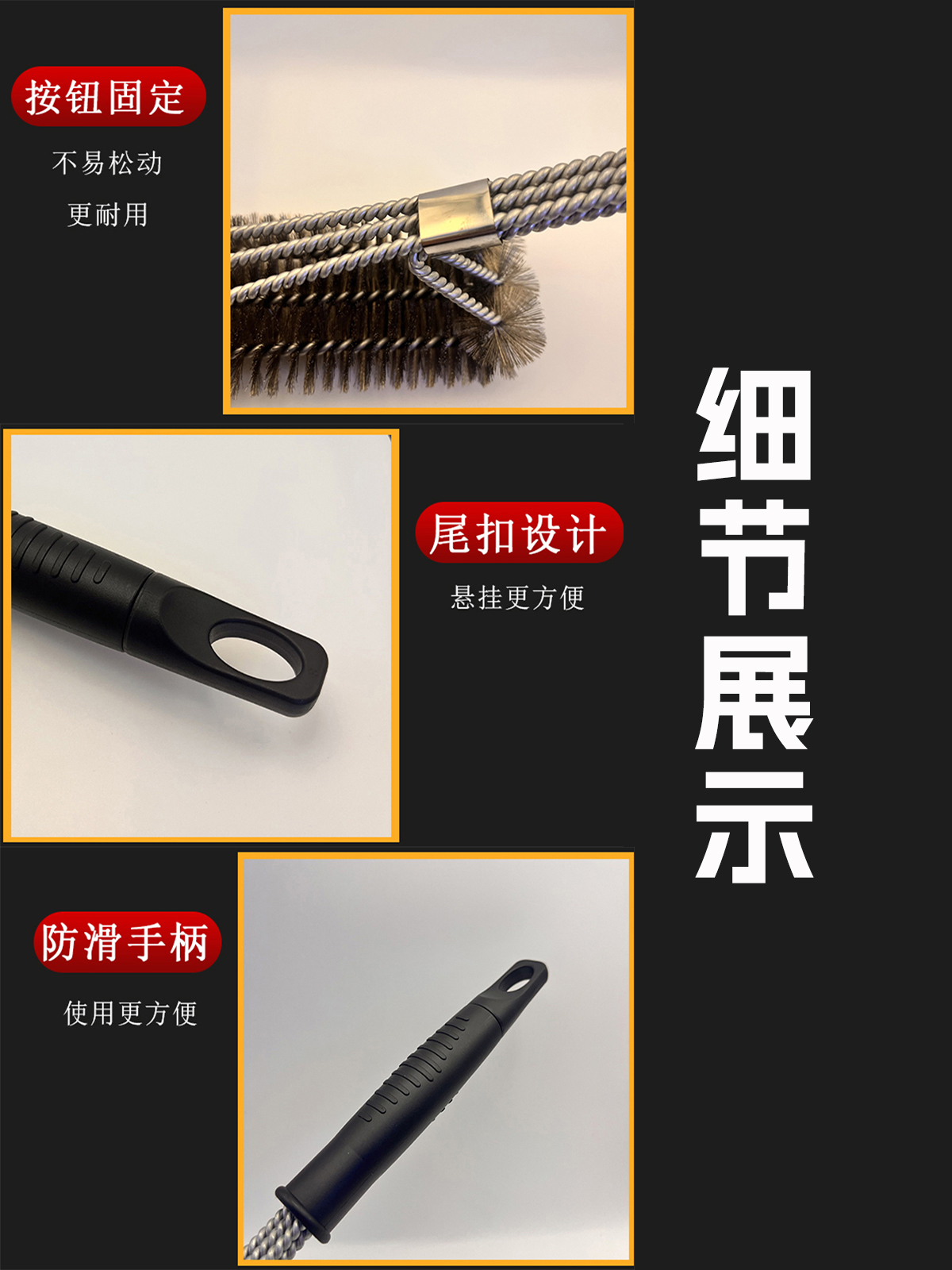 仕様 ワイヤーブラシ-3ヘッド,ワイヤーブラシ 3ヘッド(ブレード付),【中】BBQクリーニングブラシ ブレード付,【中】BBQクリーニングブラシ