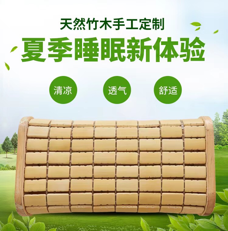P66D竹粒実木中空竹編通気麻将枕夏成人竹枕通風首保護涼しい竹