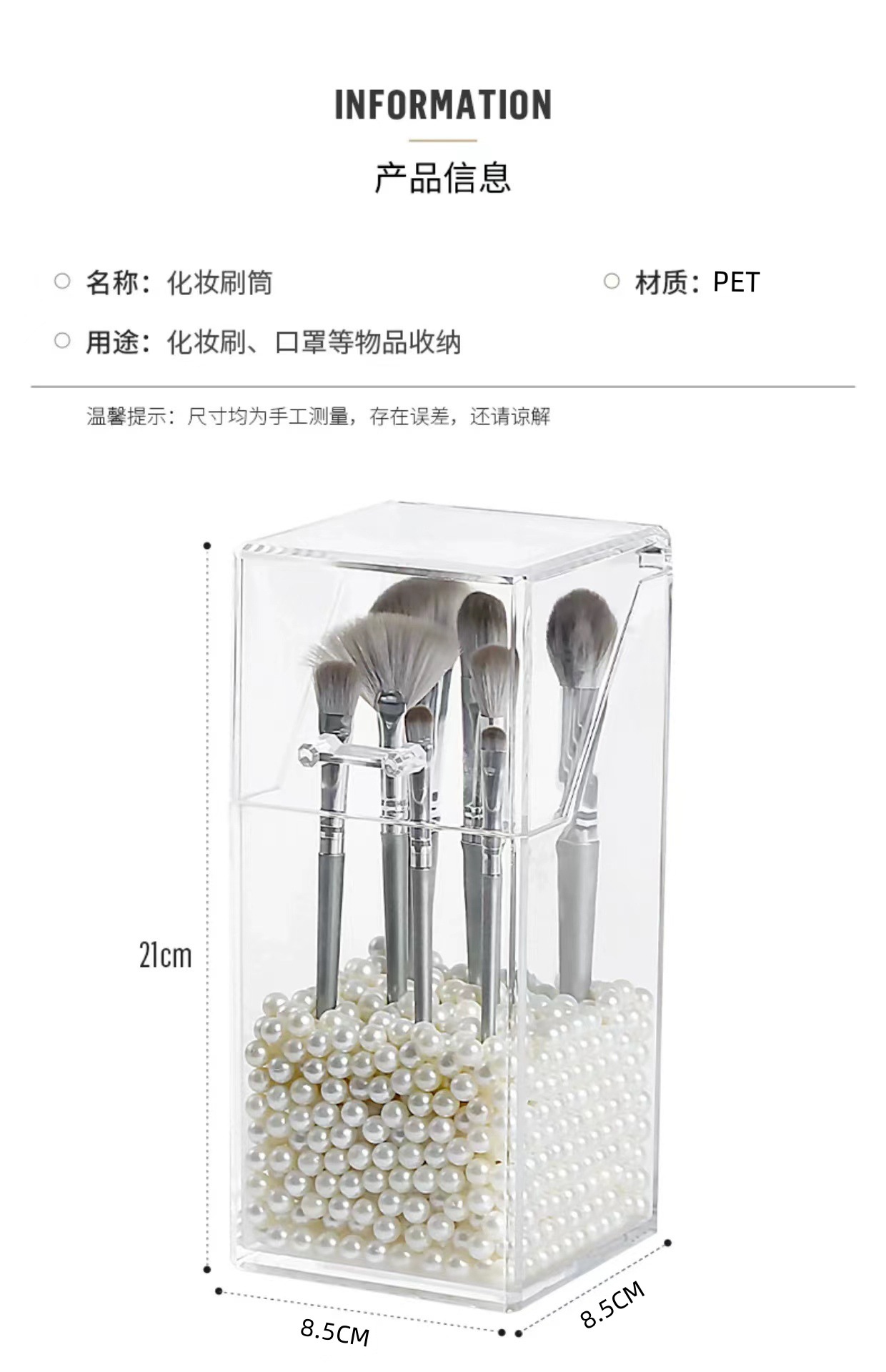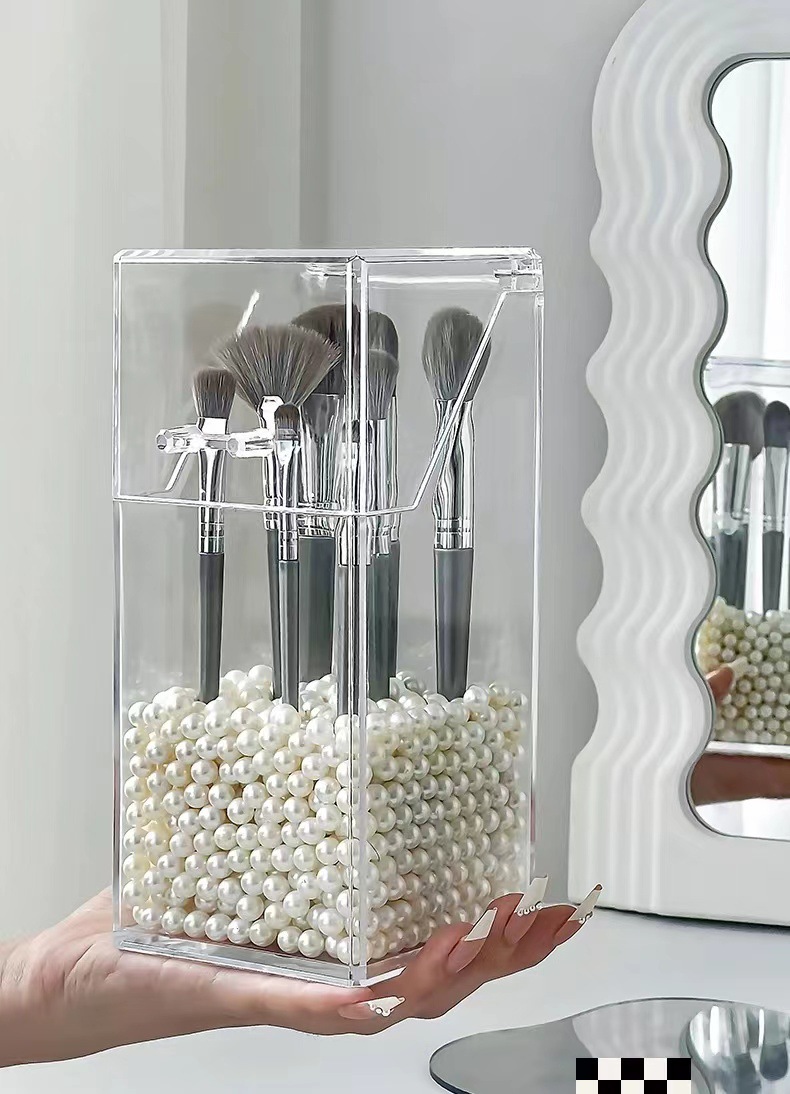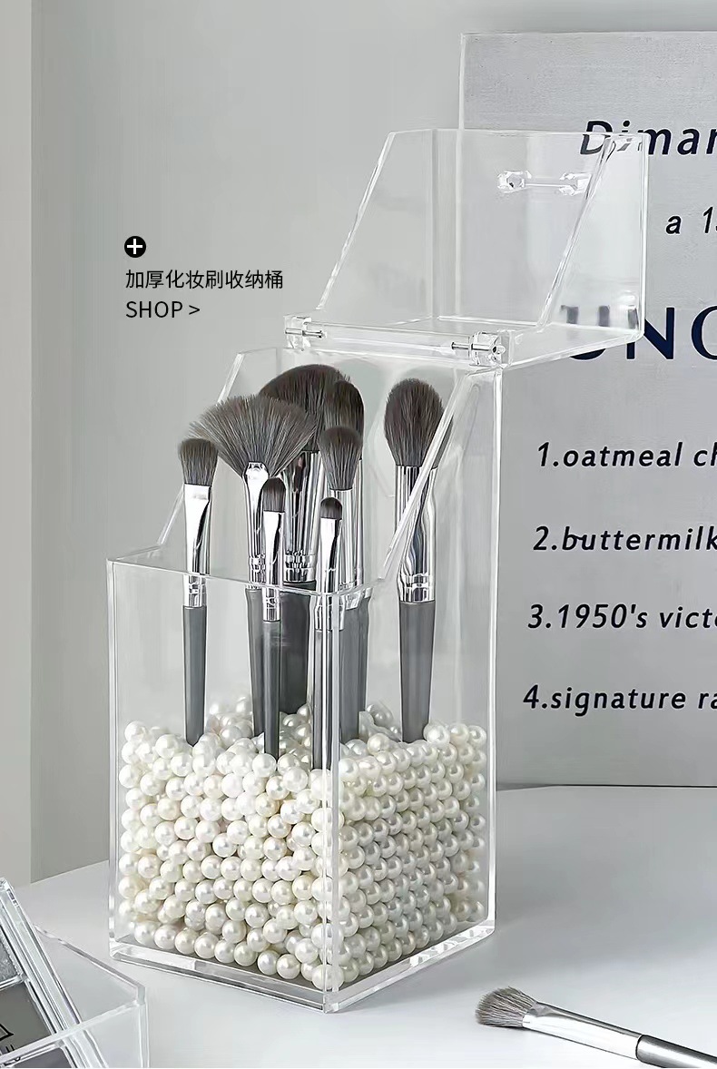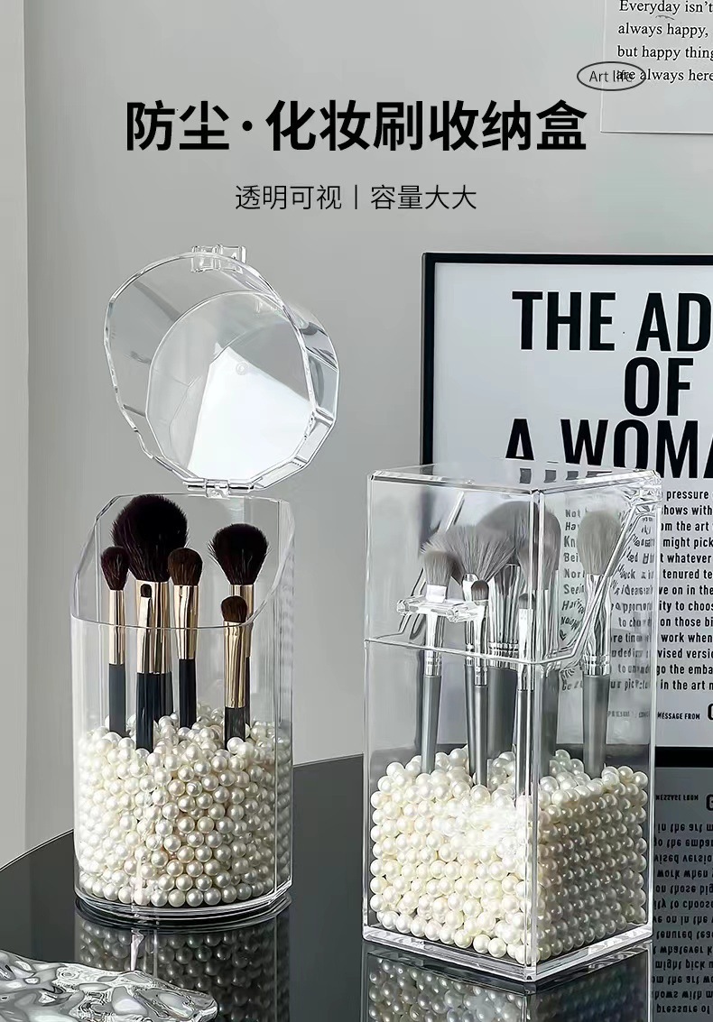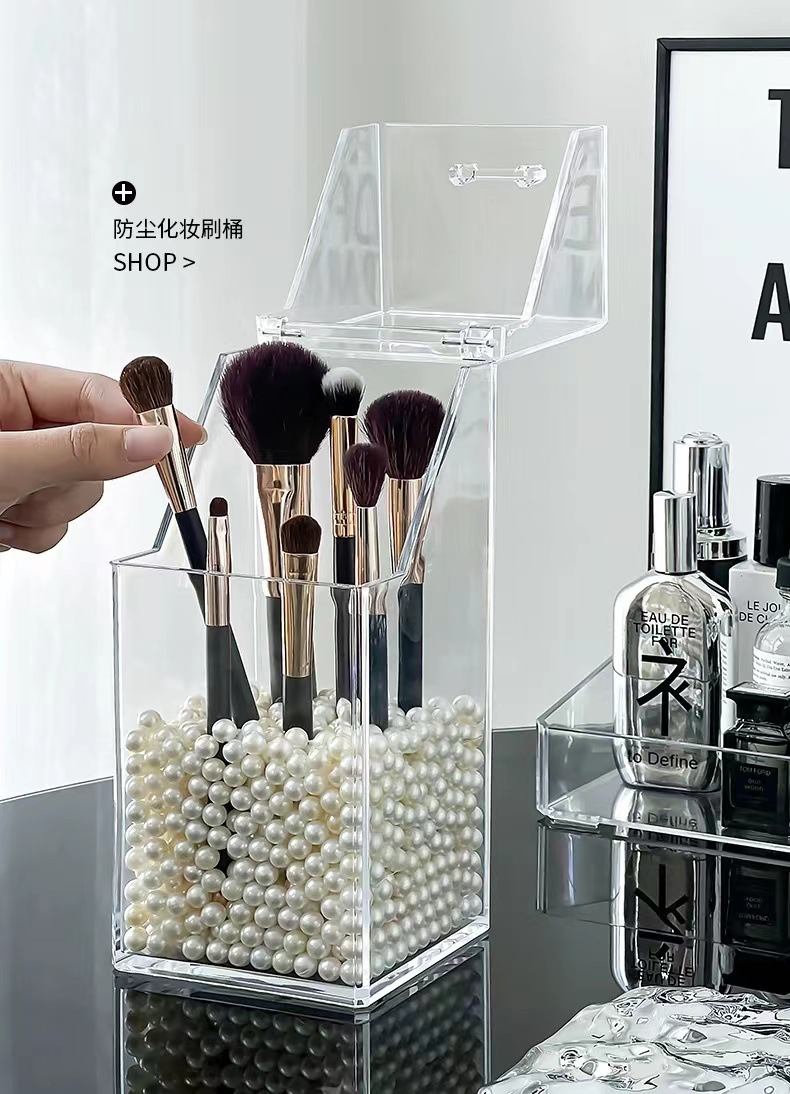 轻奢亚克力化妆刷收纳筒美妆刷桶防尘笔筒有盖透明化妆品收纳盒