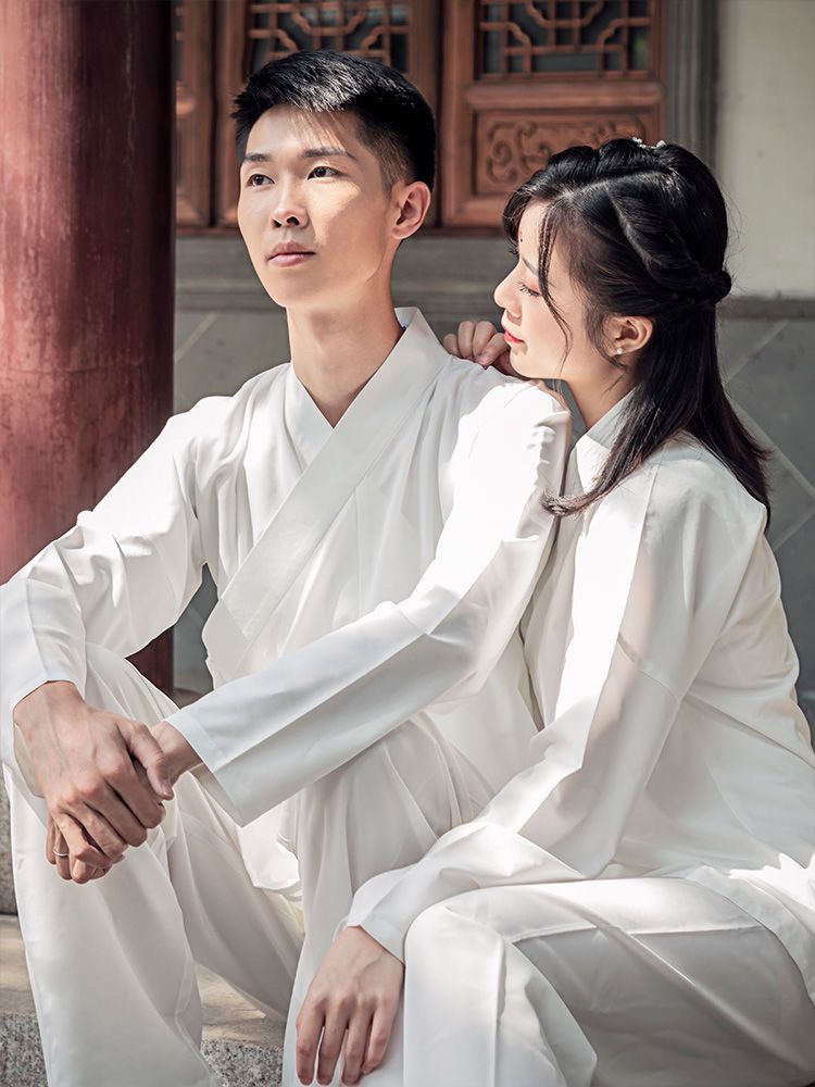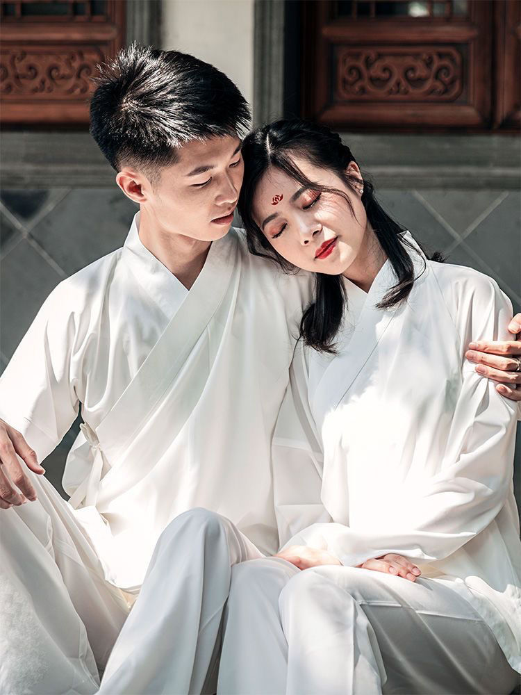 漢服の中には、古着の白いスーツが着ています。
