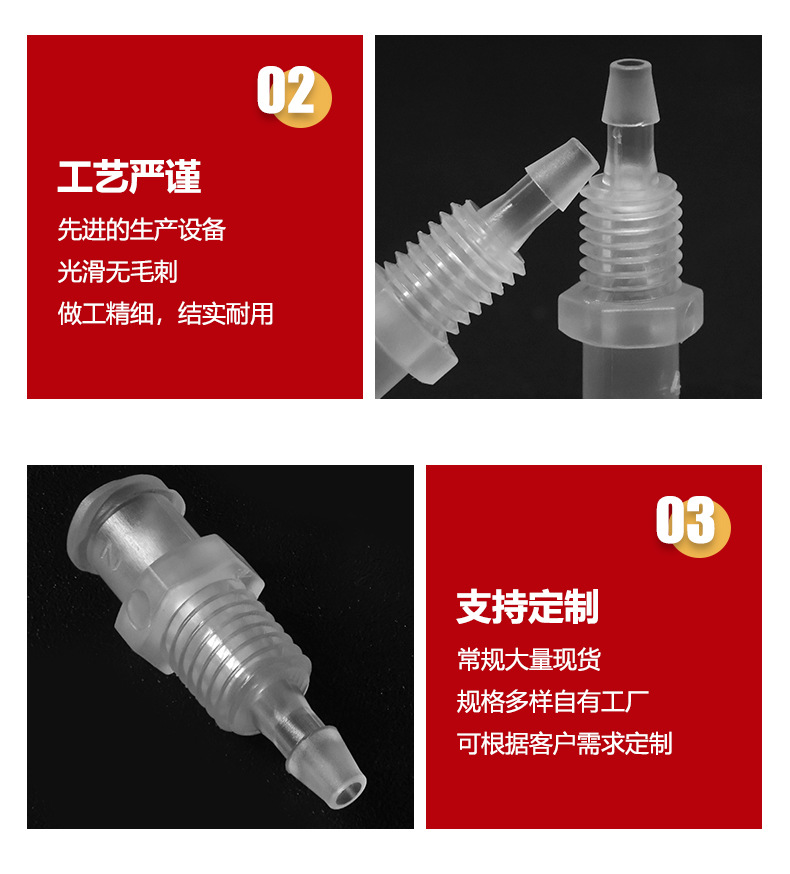 外ネジ式逆棘ジョイント シリコンゴムホースジョイント 等径分水器 PPクイックジョイント両頭