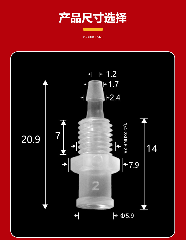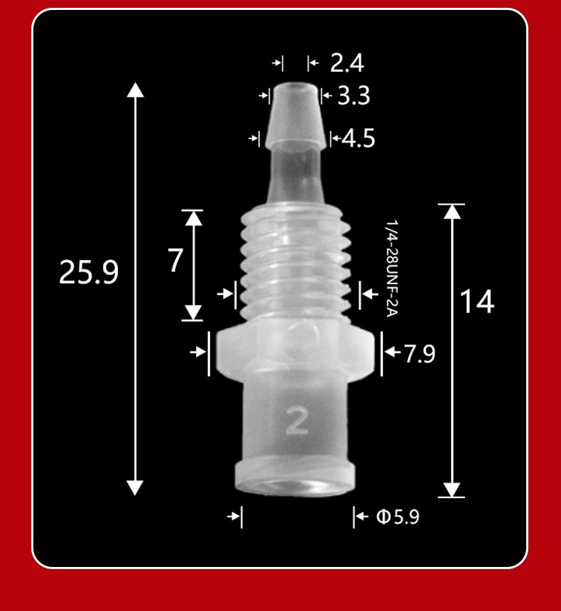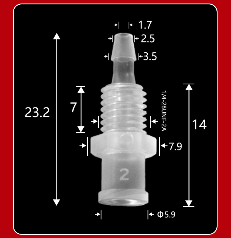 PEEK/PTFE/PP/PPS 逆円錐ジョイント 1/4-28UNF/M6 ジョイント 液体相イオンクロマトグラフィー ジョイント