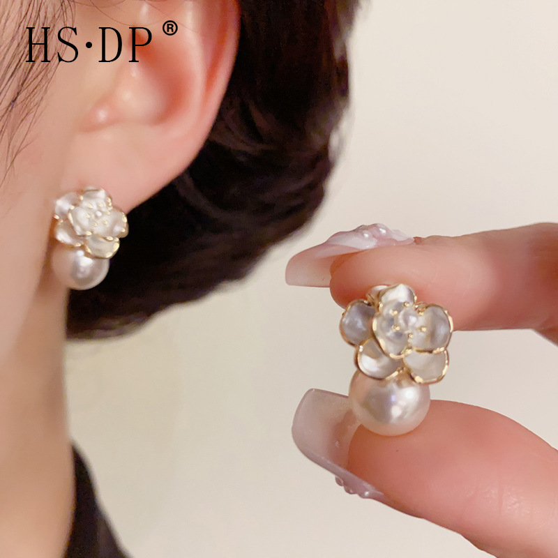 韓国式の気質のファッションの優しさはツバキの花の真珠のピアスの女性の大衆の軽くて豪華なシンプルな設計の銀の針のイヤリングに合います。