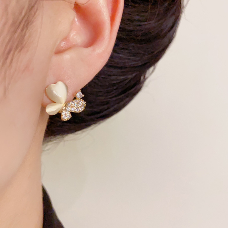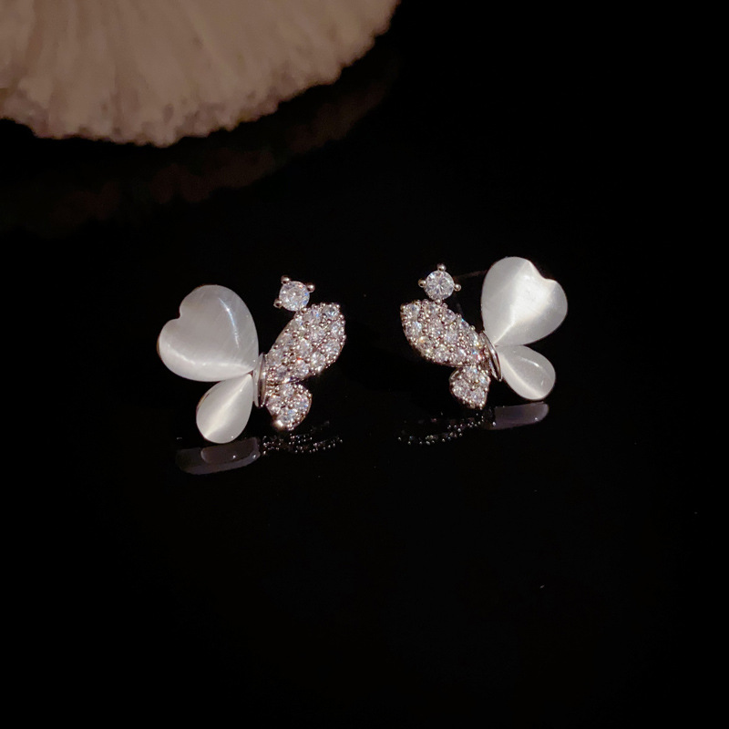 ゴールドダイヤモンドオパールバタフライスタッドピアス(厚手の本金メッキ),シルバーダイヤモンドオパールバタフライスタッドピアス(厚い本金メッキ)