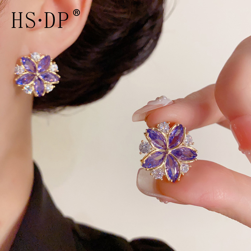 日韩简约微镶满锆五瓣花耳钉精致时尚轻奢百搭高级感超闪耳环批发