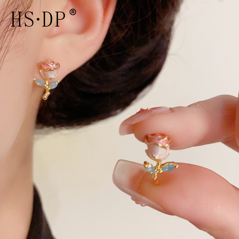 S925銀針の精巧なファッションの甘い組み合わせの油のバラのイヤリングの気質は簡単で高品質のイヤリングの卸売りです。