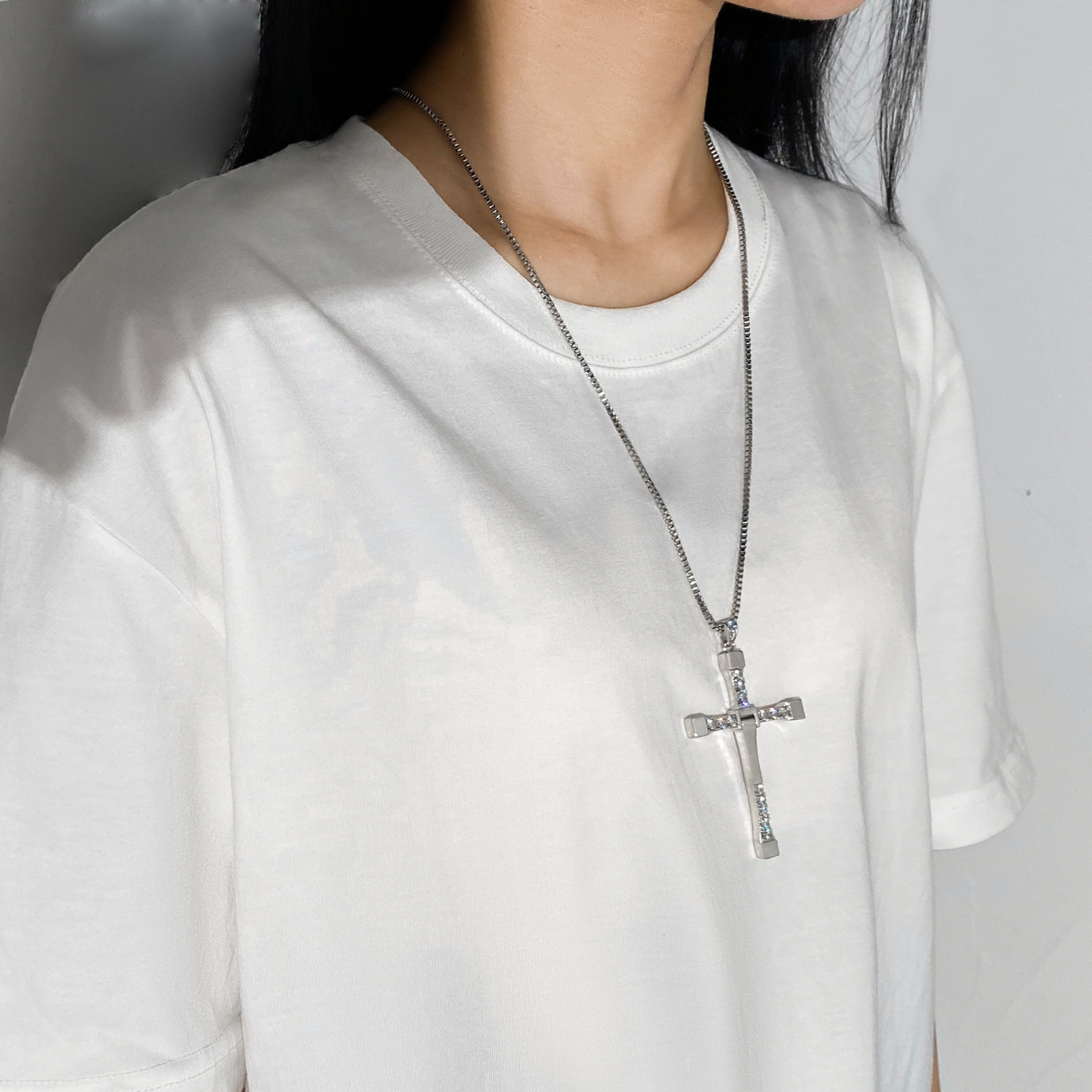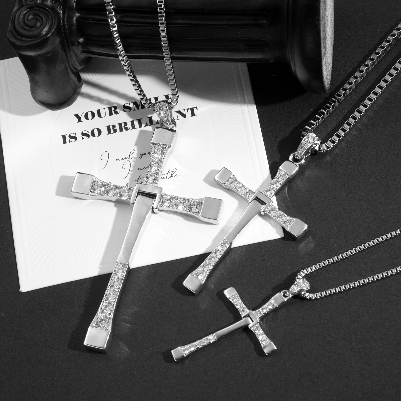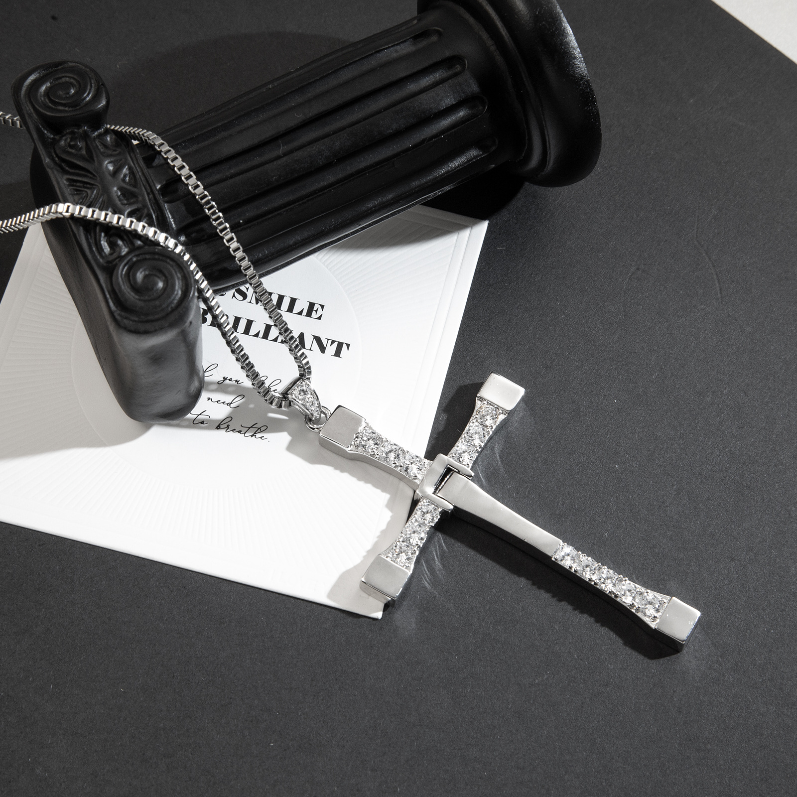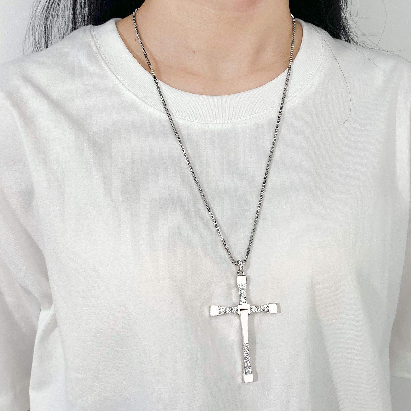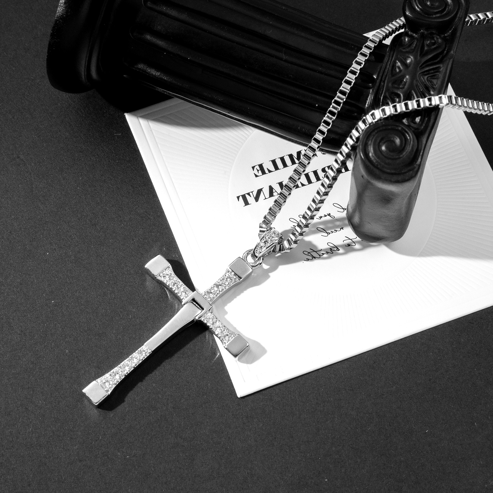 产品名称:跨境电商货源男士饰品电镀白金带钻十字架嘻哈时尚长款项链饰品