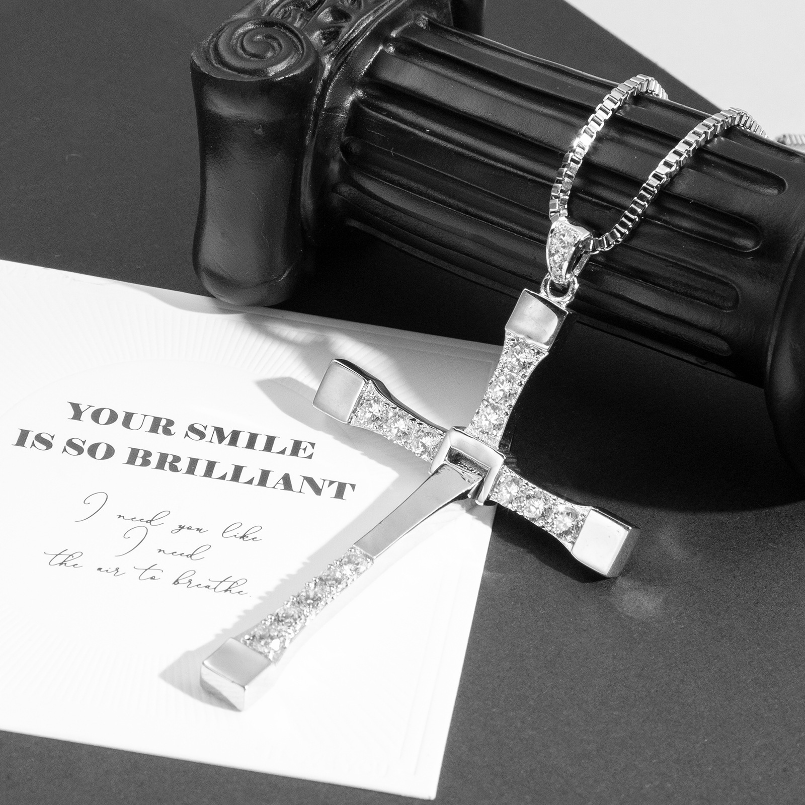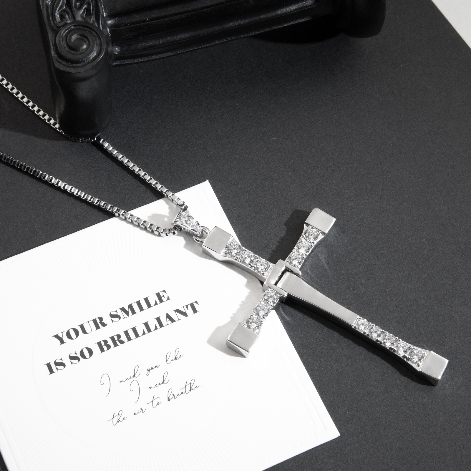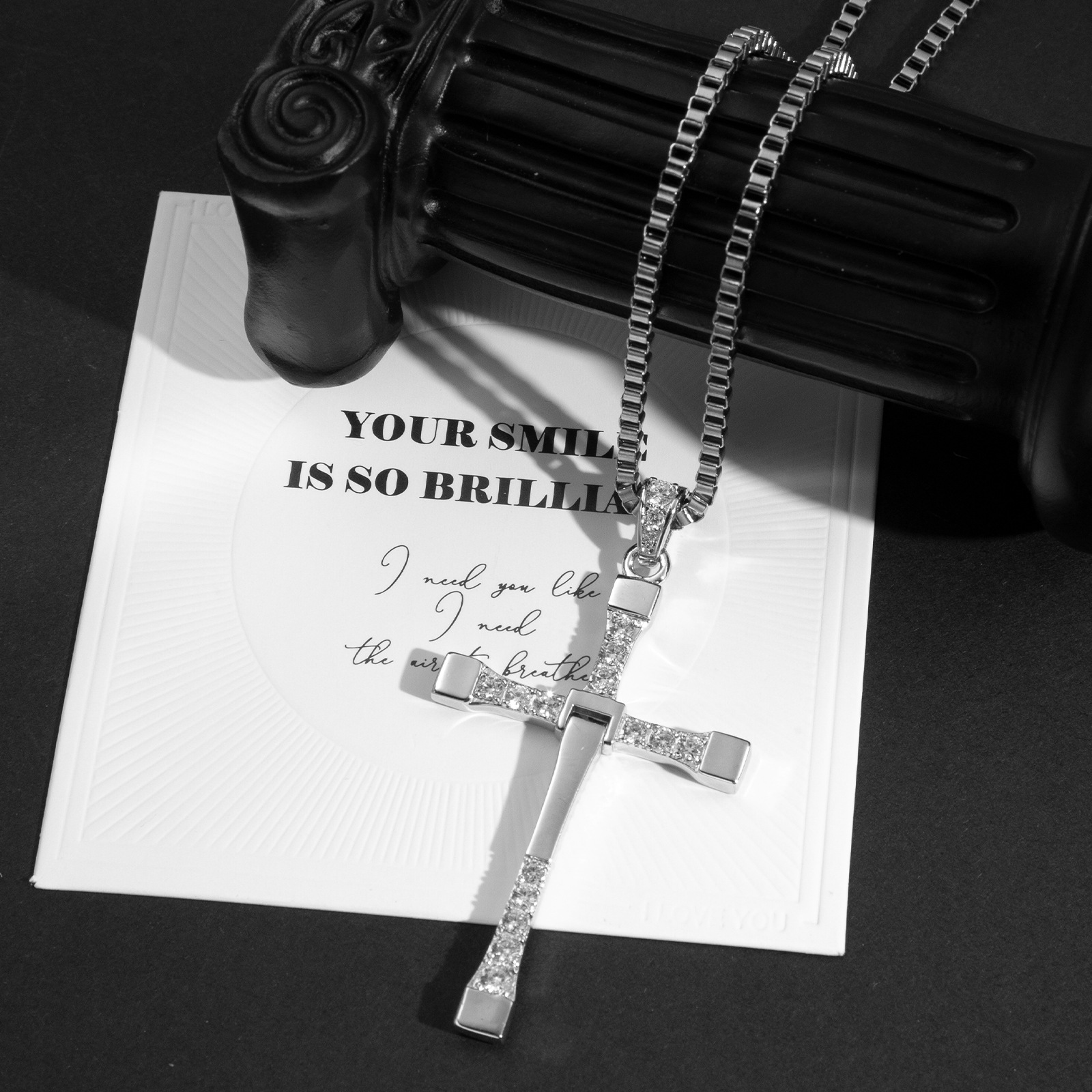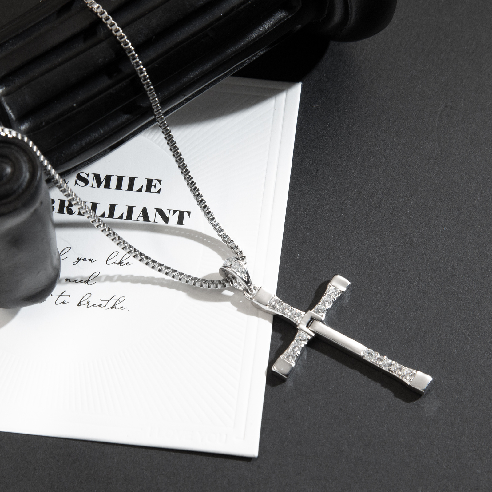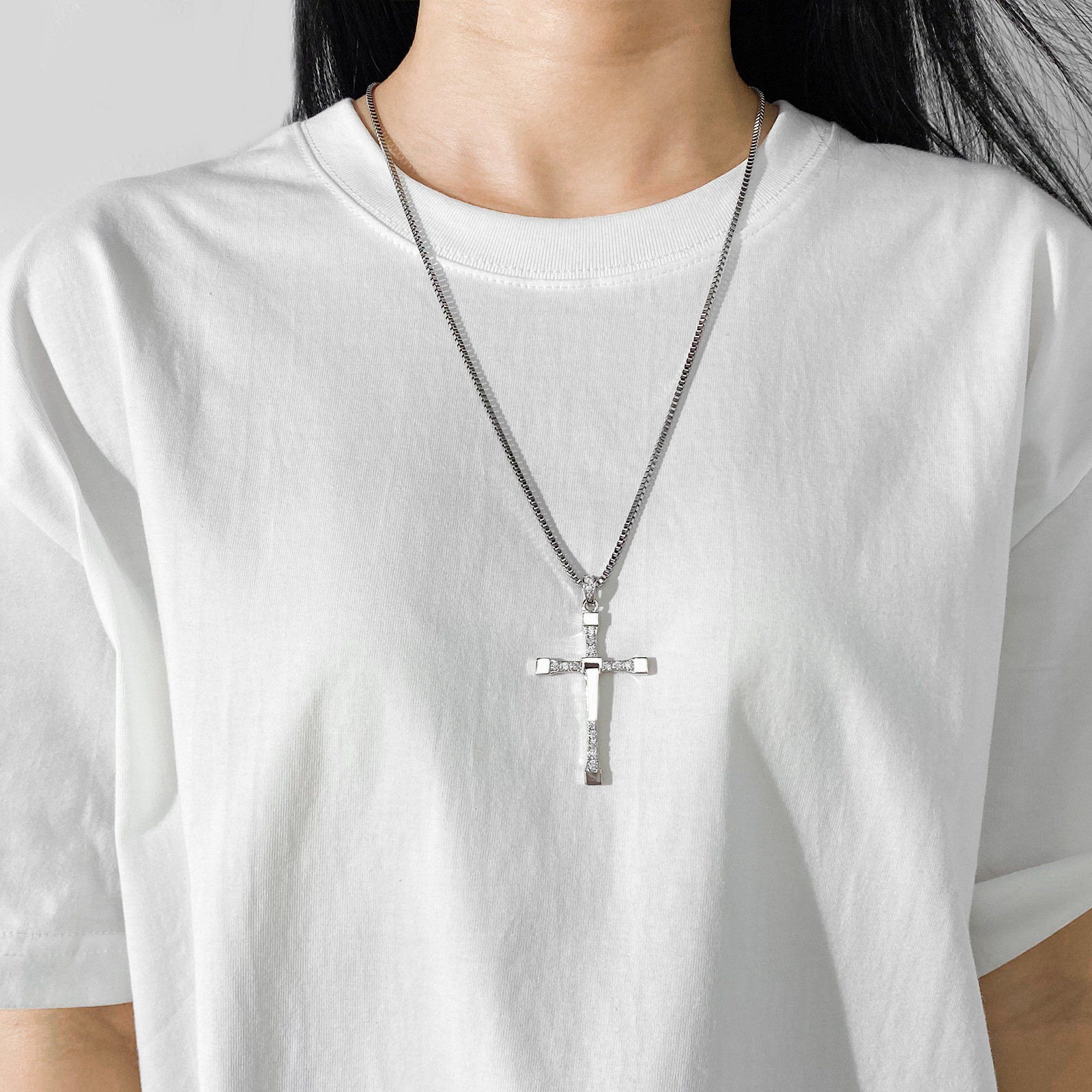 产品名称:跨境电商货源男士饰品电镀白金带钻十字架嘻哈时尚长款项链饰品
