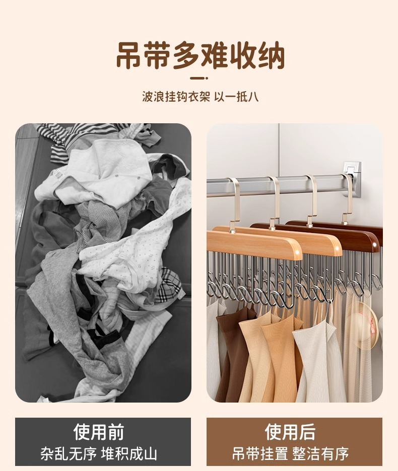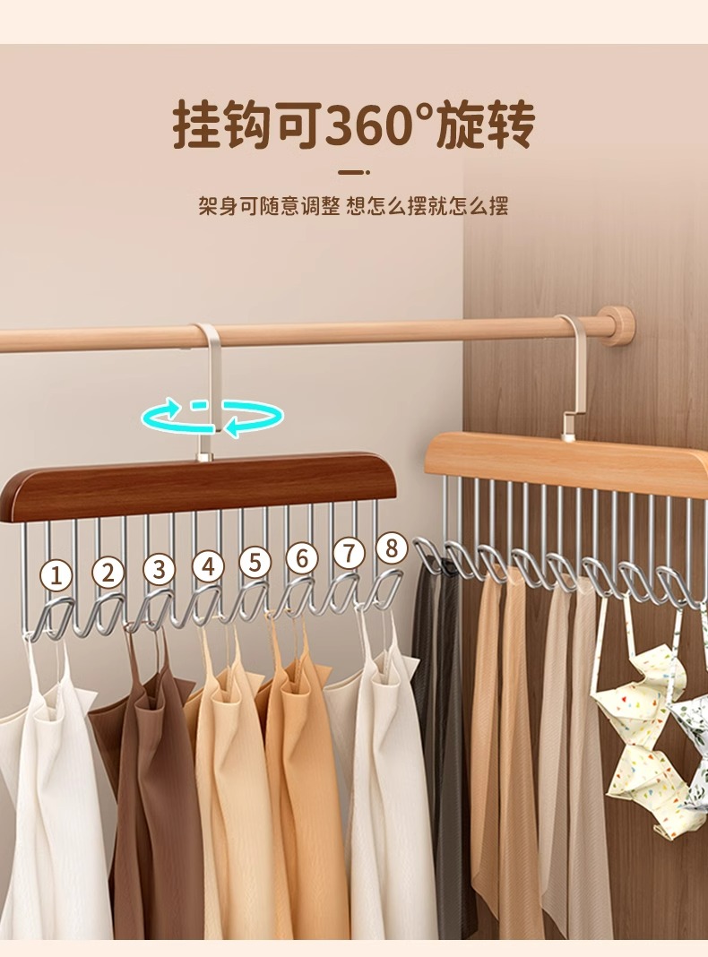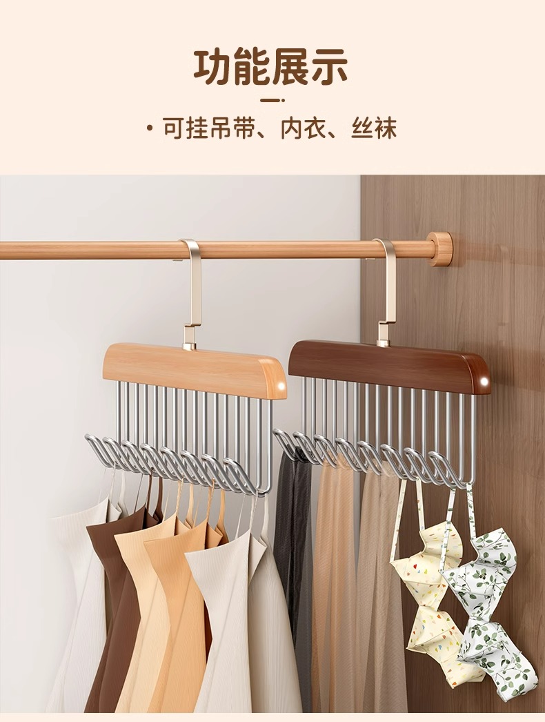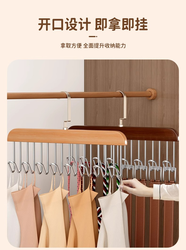 木製波ハンガーベストストラップ下着フック寮用多機能衣類ハンガー収納ハンガー