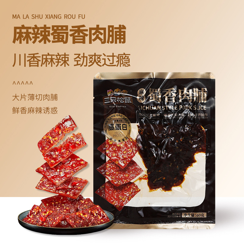 批发三只松鼠蜀香肉脯60g新鲜肉类休闲零食干肉即食解馋小吃包邮
