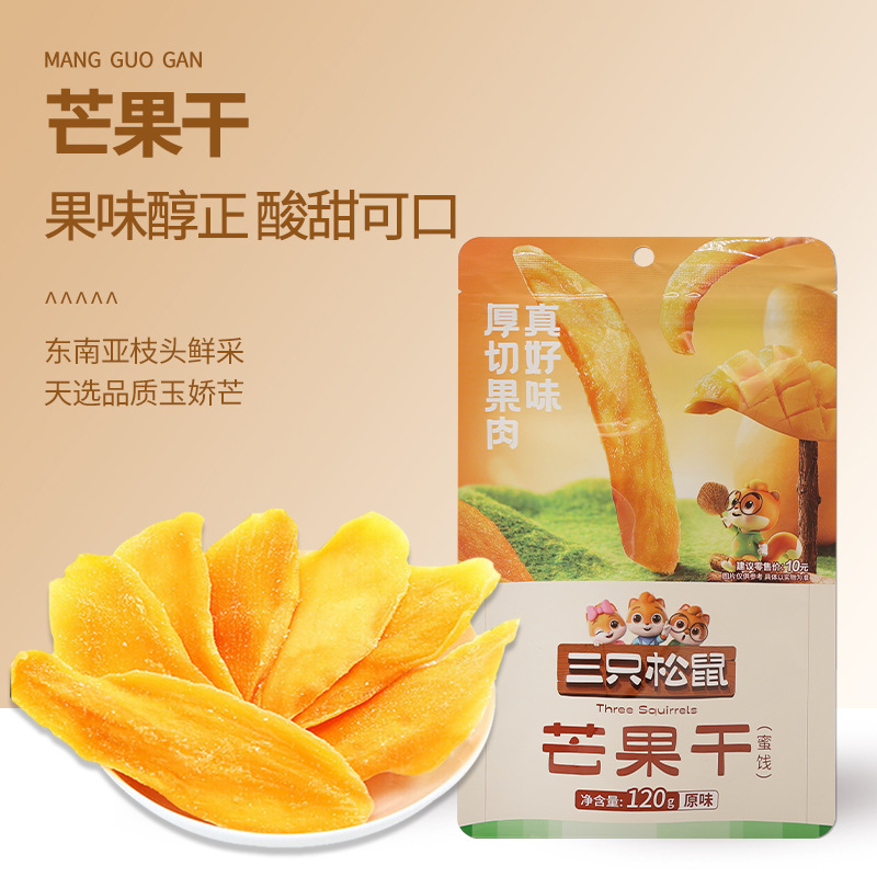批发三只松鼠芒果干120g新鲜果干果脯酸甜零食水果干解馋零食包邮