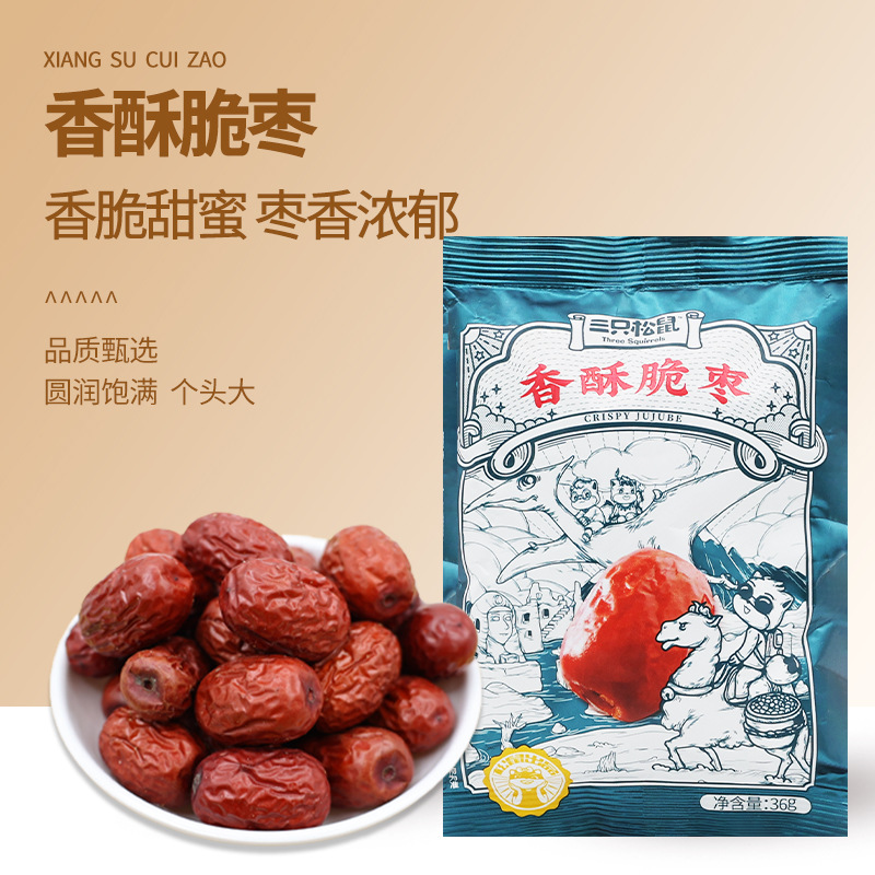 批发三只松鼠香酥脆枣36g新鲜红枣干新疆特产免洗无核零食包邮