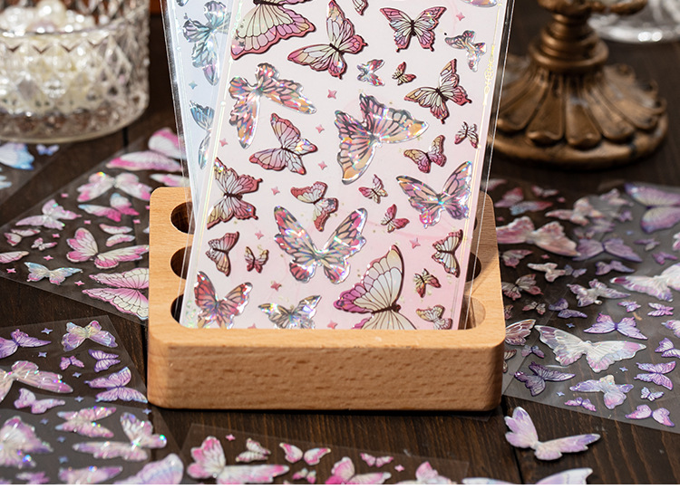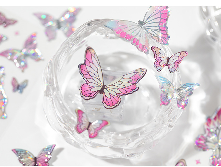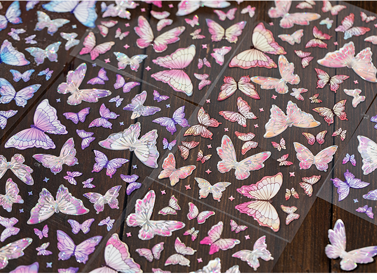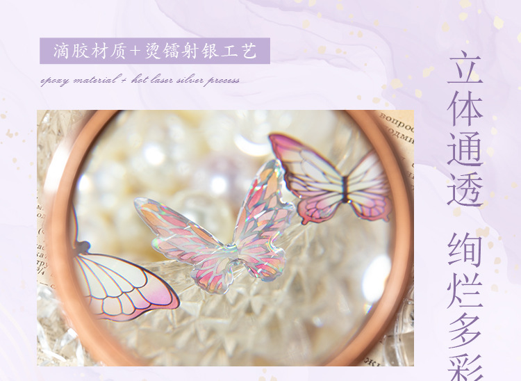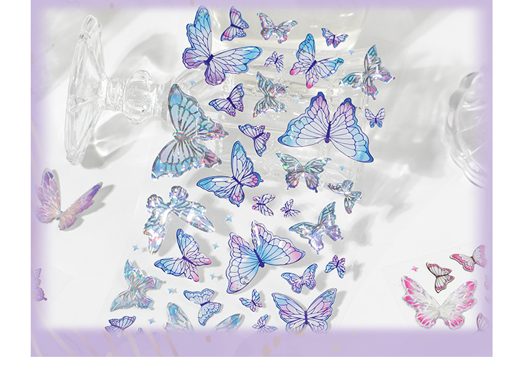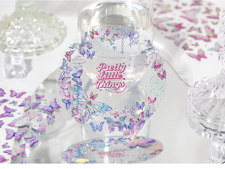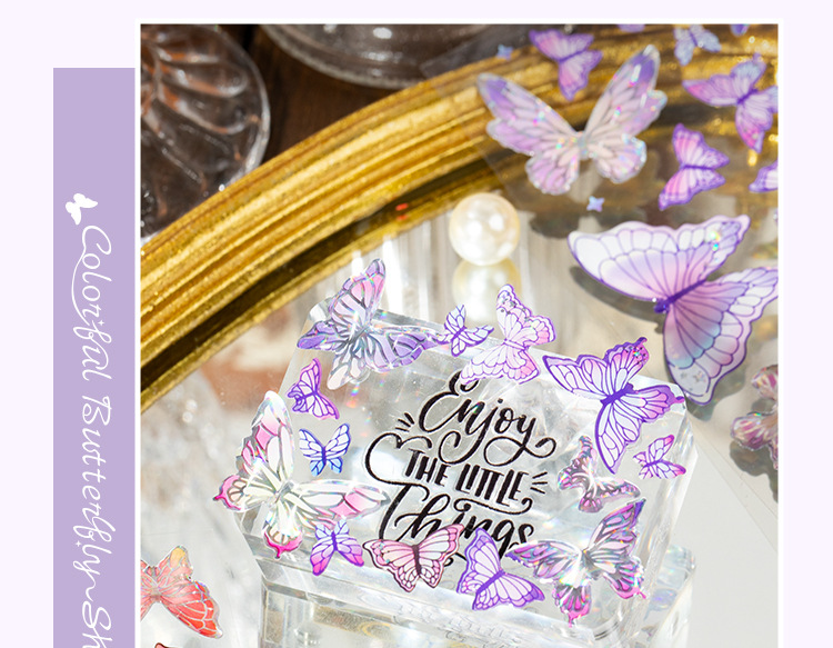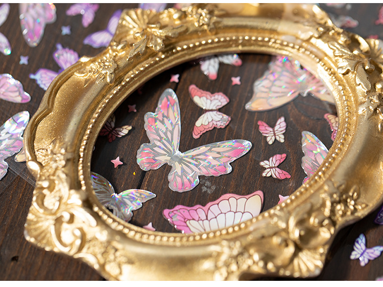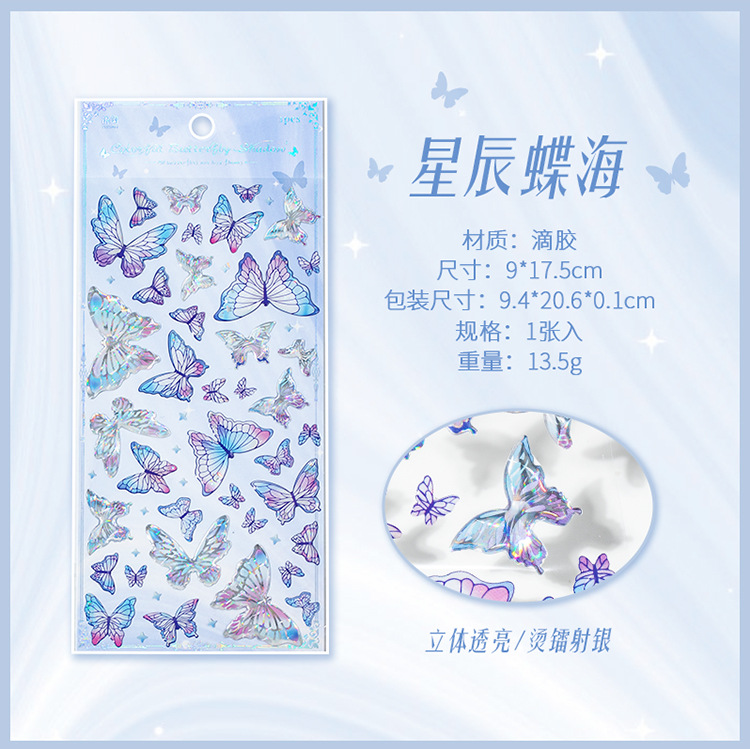 語閑PETシール浮蝶星夢シリーズ箔押し材質蝶テーマ手帳造景装飾タイル素材