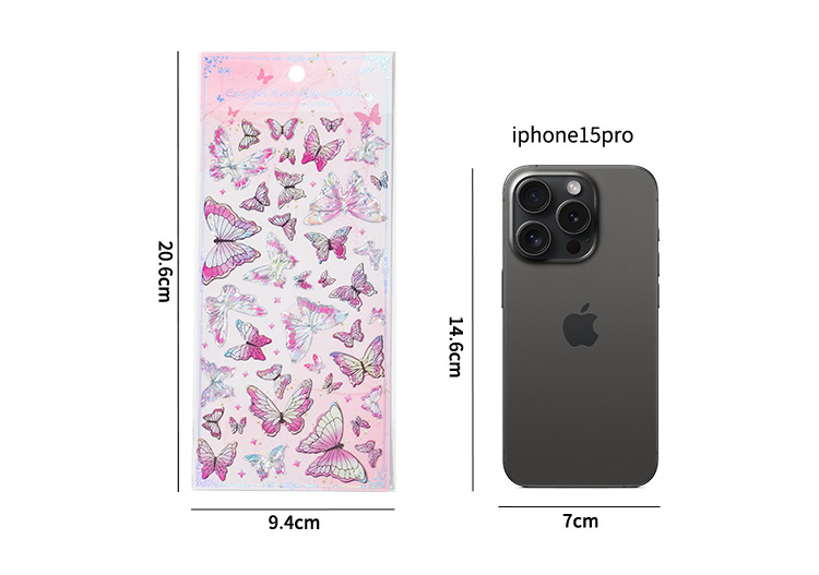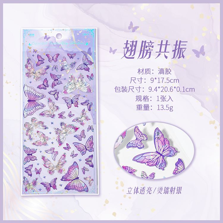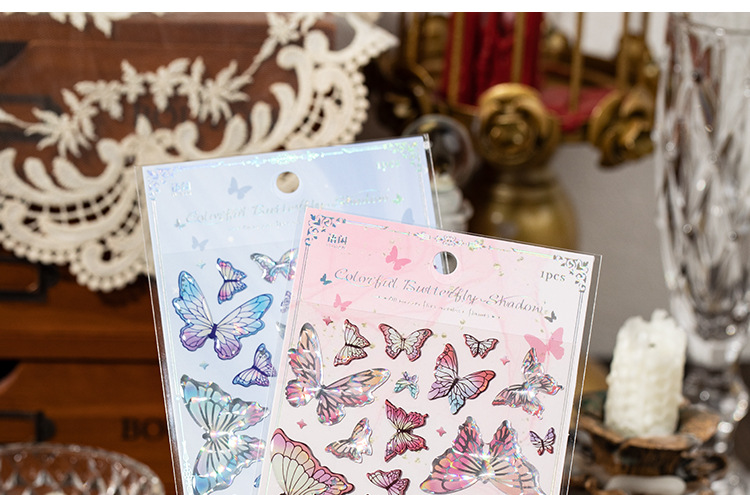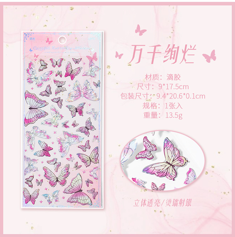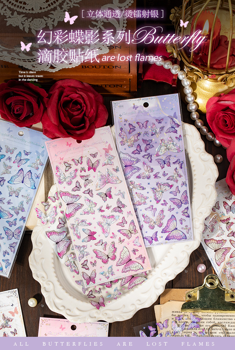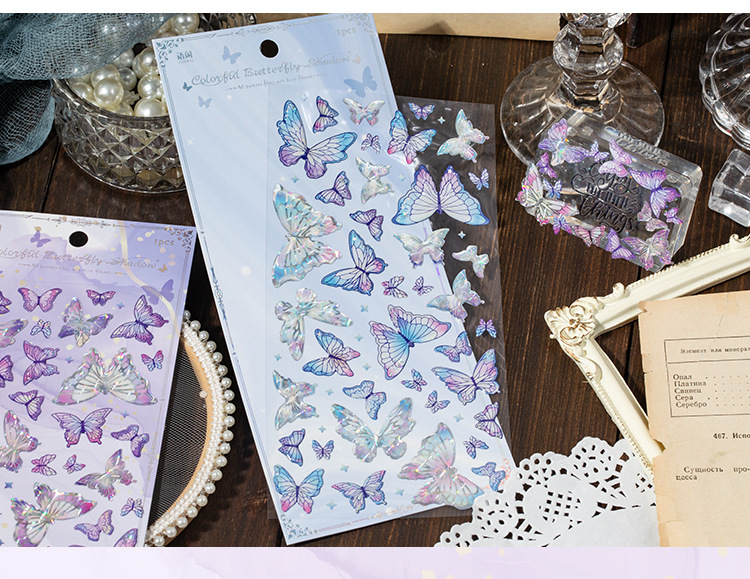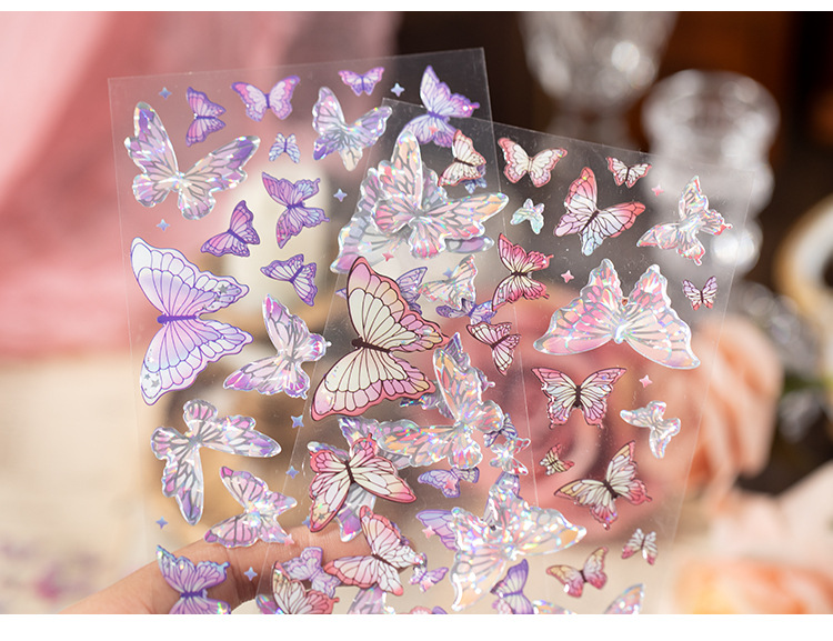 語閑PETシール浮蝶星夢シリーズ箔押し材質蝶テーマ手帳造景装飾タイル素材