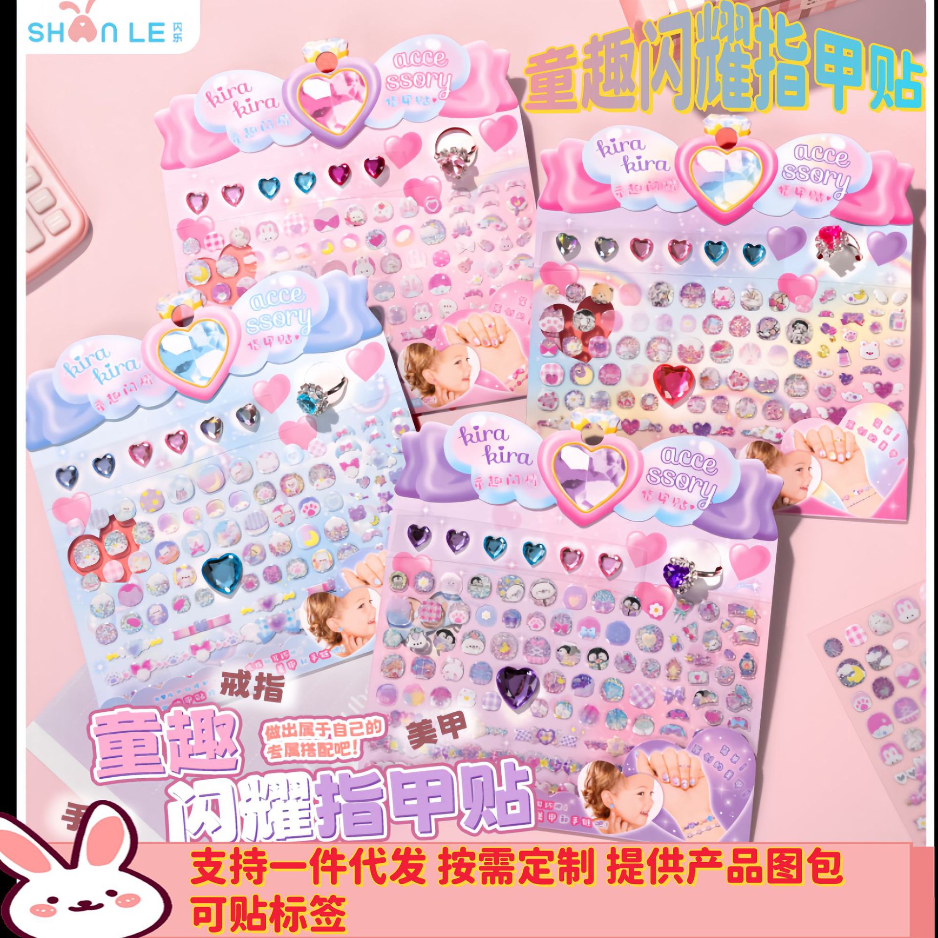 闪乐儿童女孩指甲贴可爱卡通贴纸手链带戒指宝石贴画宝宝装扮贴贴