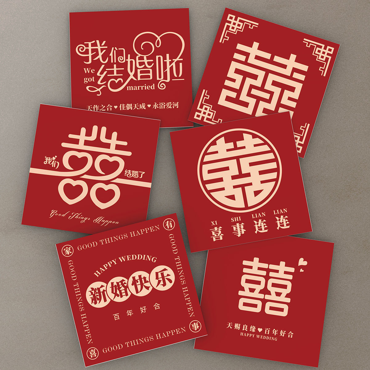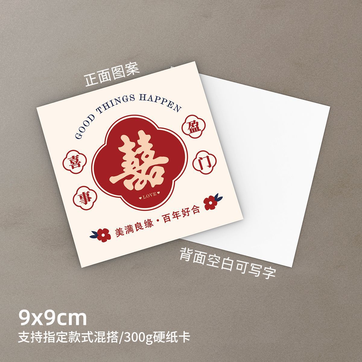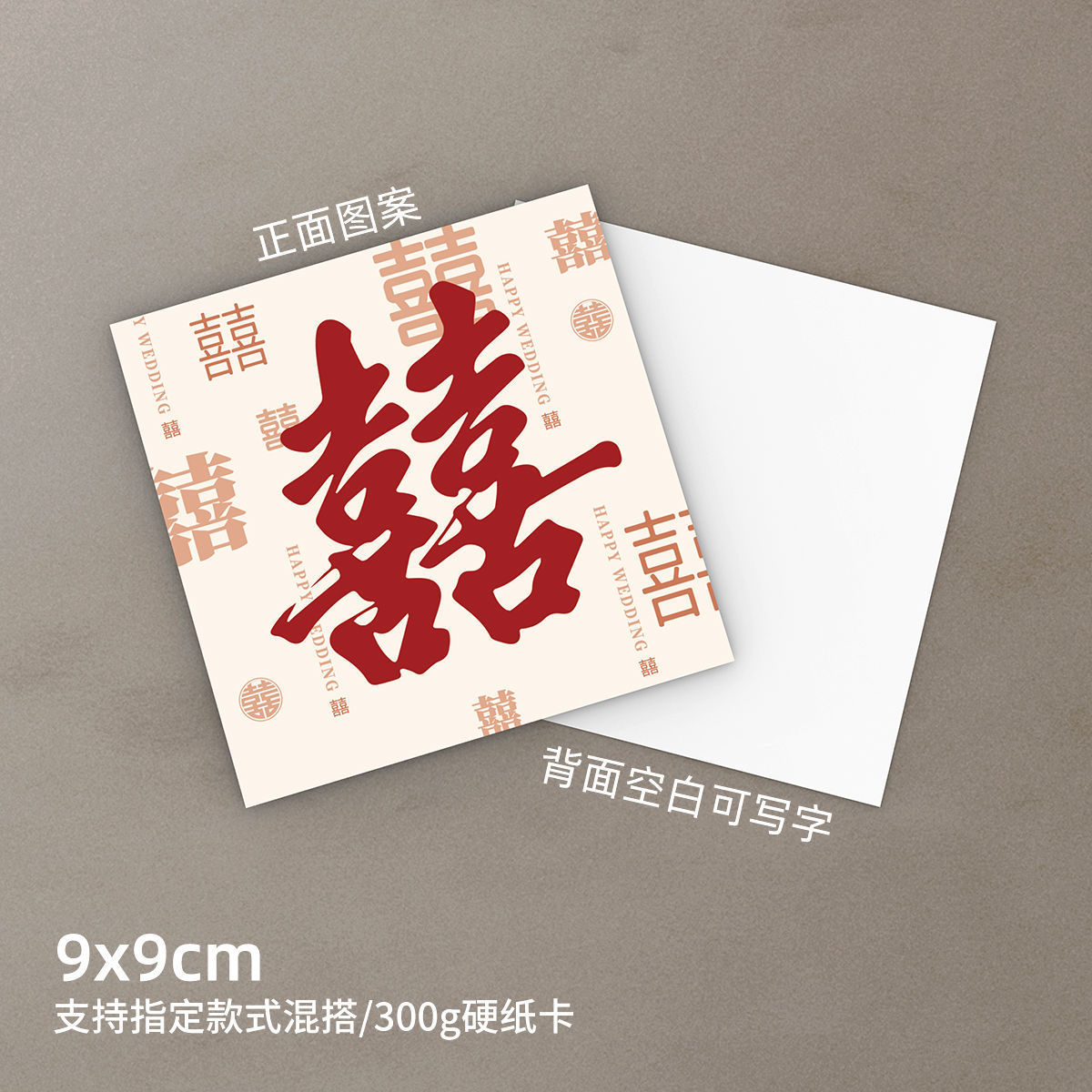 中式婚礼喜字卡片婚糖盒装饰贴纸新婚伴手礼贺卡喜庆囍字祝福卡片