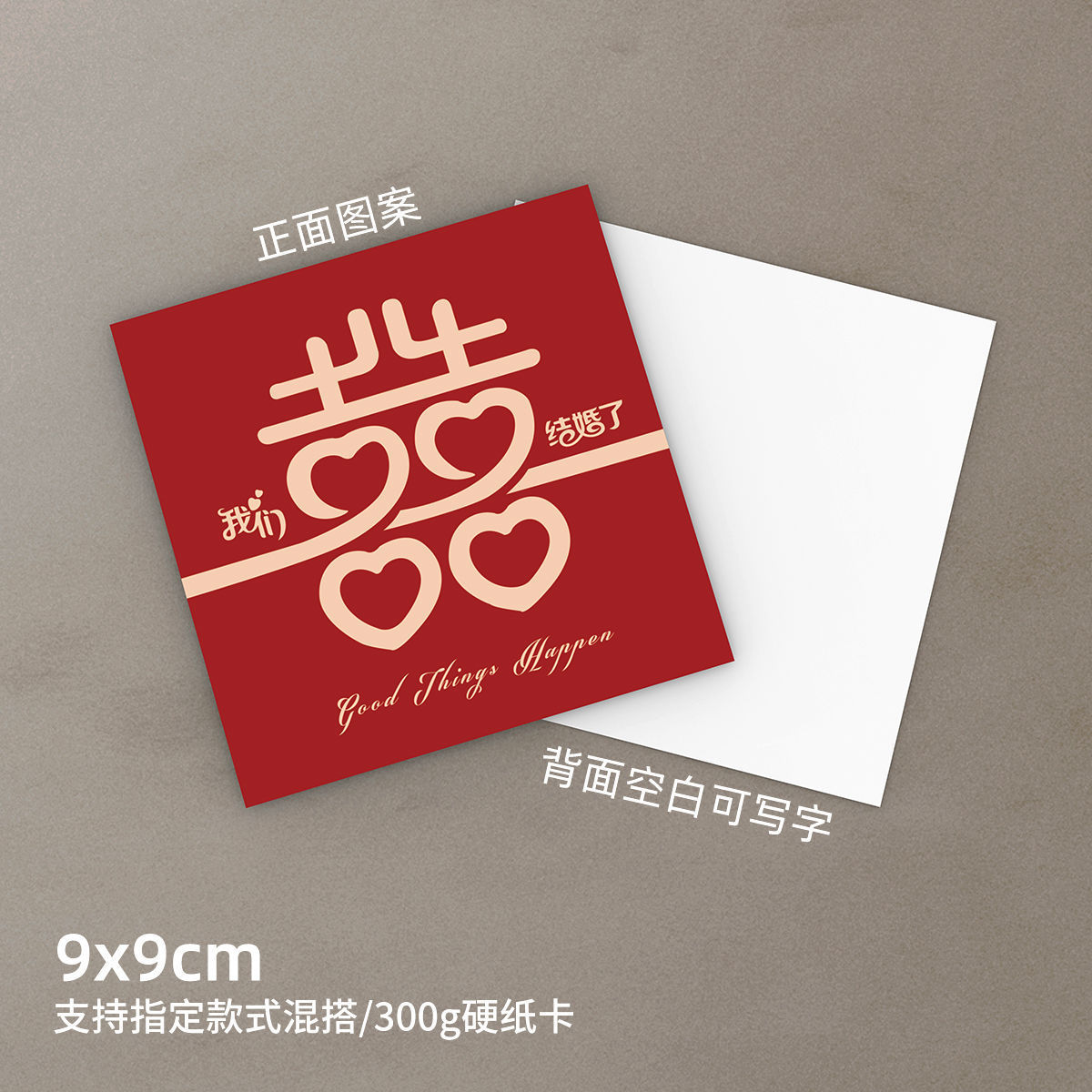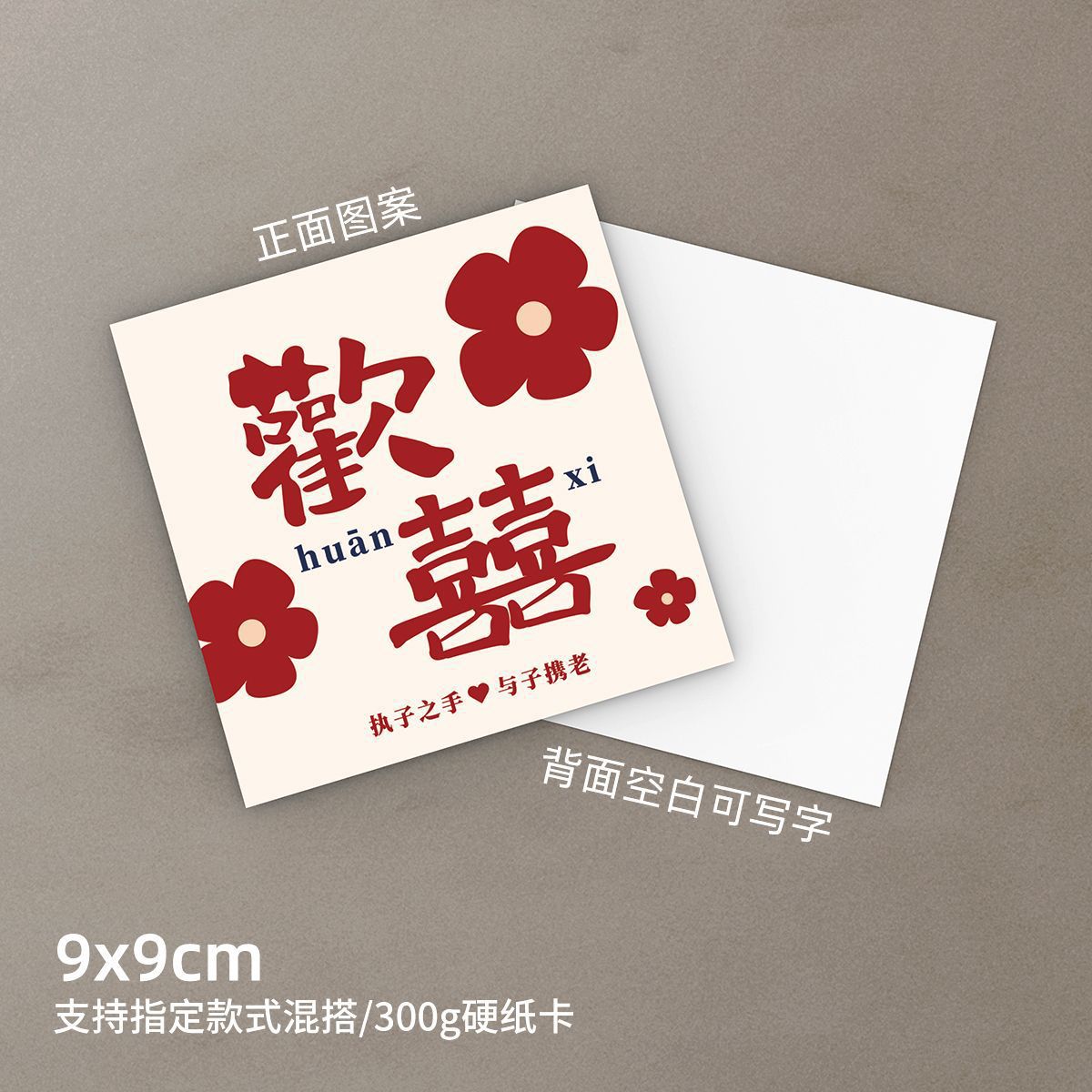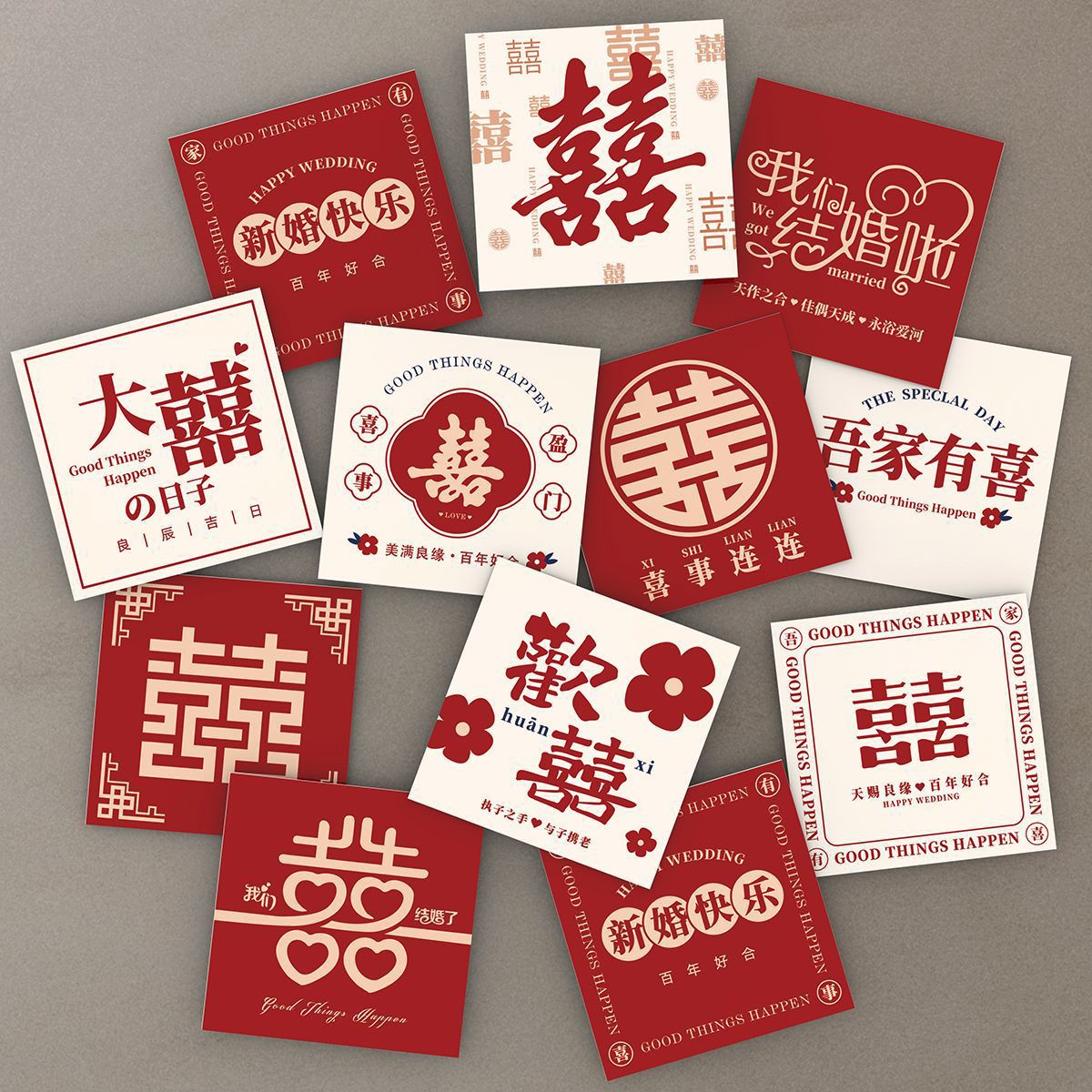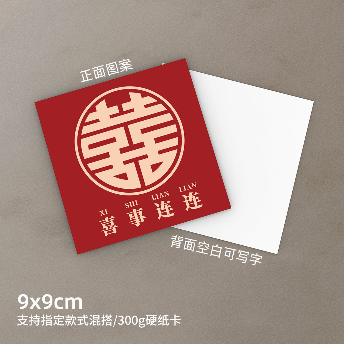 中式婚礼喜字卡片婚糖盒装饰贴纸新婚伴手礼贺卡喜庆囍字祝福卡片