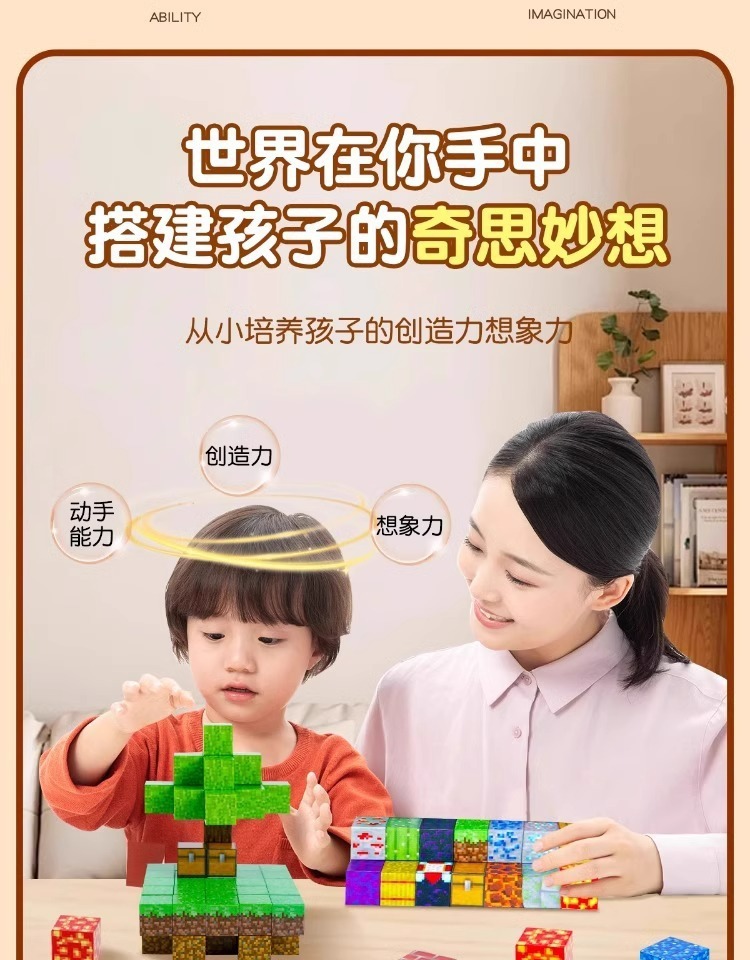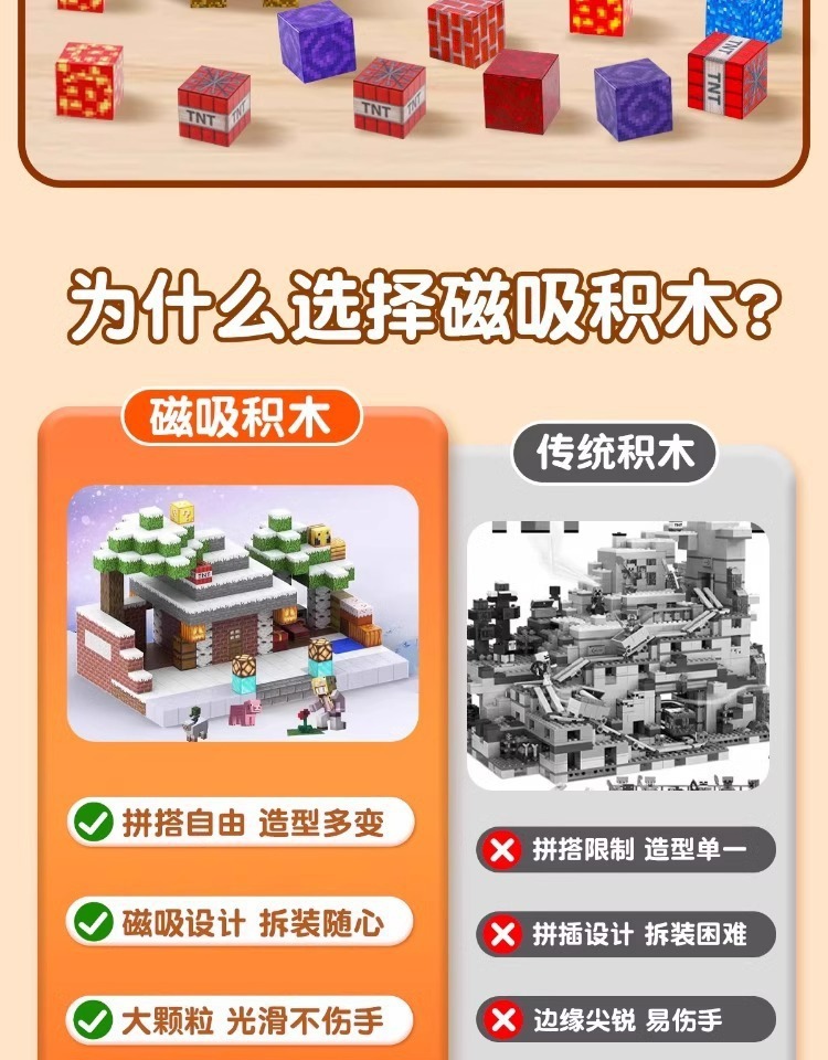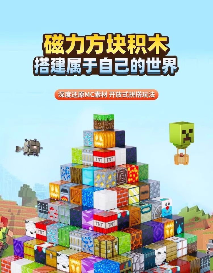 我的世界磁力方块TNT磁铁磁吸铁积木纳盒迷你益智儿童玩具男孩