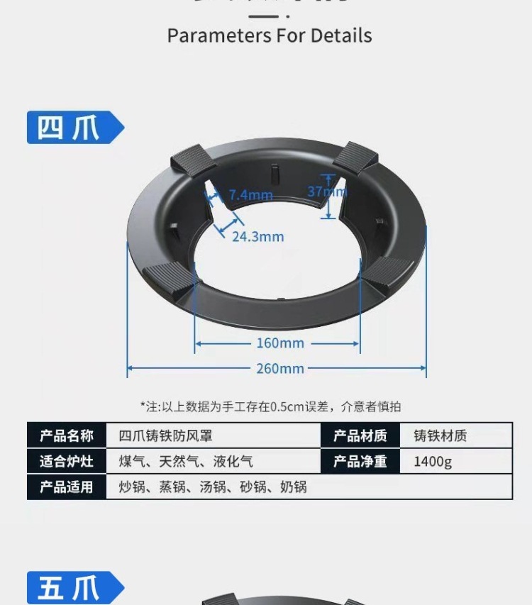 仕様 厚肉鋳鉄製4本爪フロントガラス(4本爪ブラケットのみに適用),厚手鋳鉄製5本爪風防(5本爪ブラケットのみ適用),最新の厚みのある鋳鉄製 8 爪フロントガラス (ストーブブラケットの 99% に適しています),ミルクポットホルダー