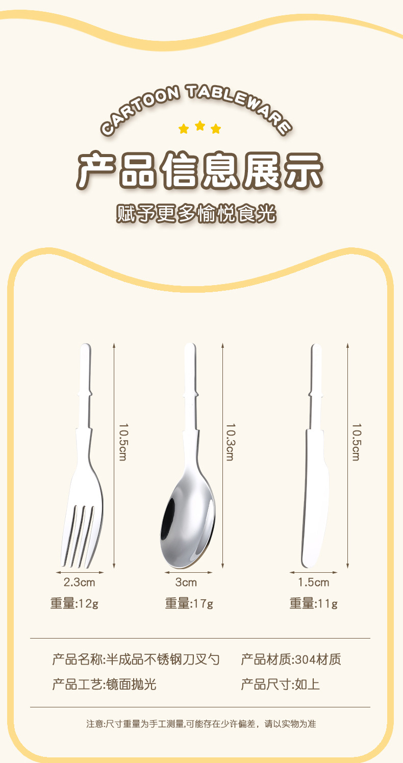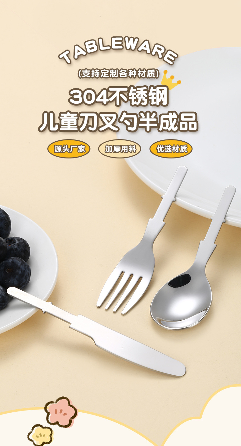 子供用 304 ステンレス鋼のナイフ、フォーク、スプーン、ベビー洋食器、半完成品、アクセサリー、フォーク、スプーン