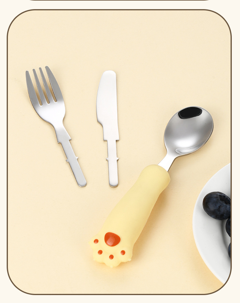 子供304ステンレスシリコンフォークスプーン漫画フォーク赤ちゃんスープ訓練食事赤ちゃん補助スプーン