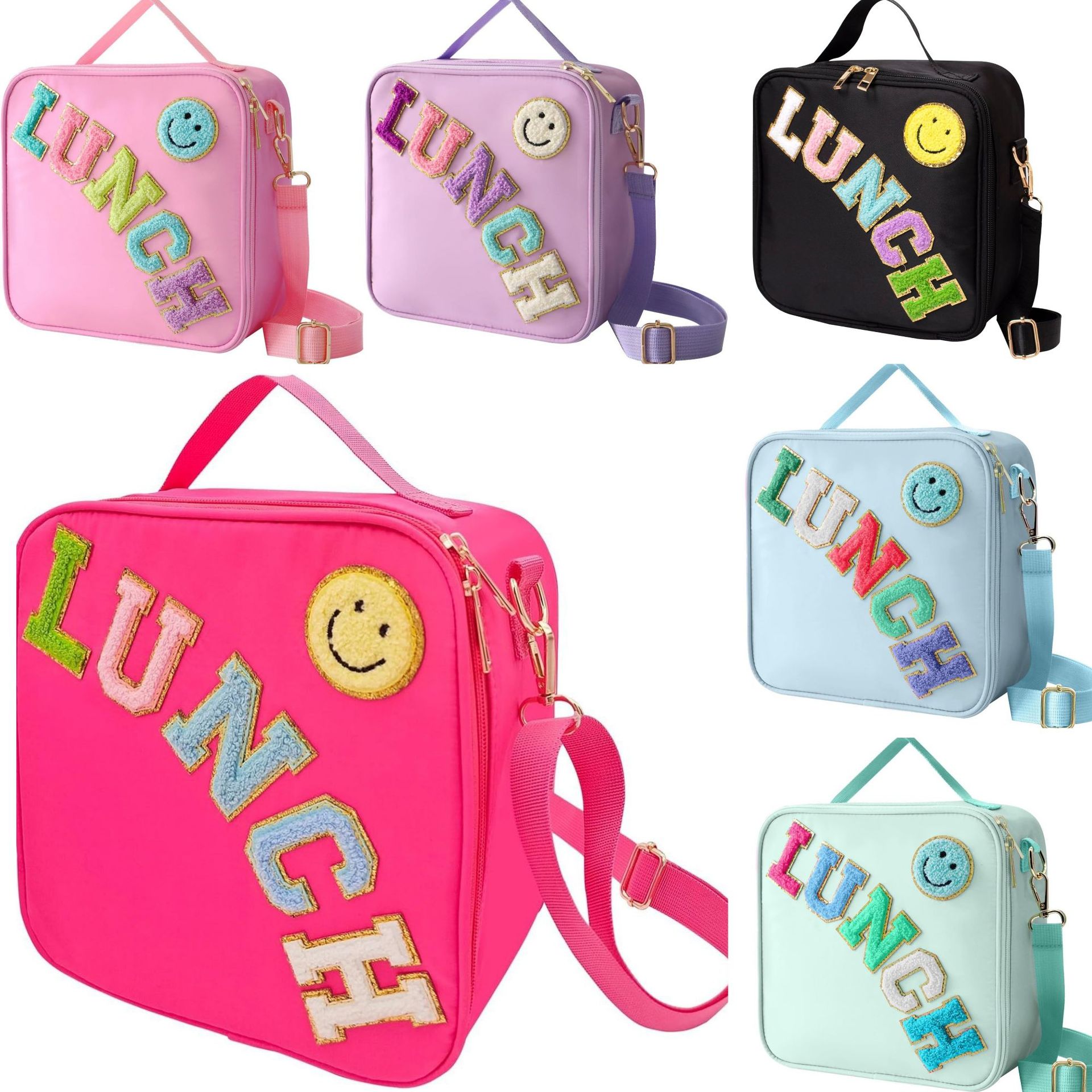 クロスボーダー爆発の鮮度保持ランチバッグ刺繍タイプのアルファベットの笑顔屋外携帯用保温アルミフィルムのランチバッグ