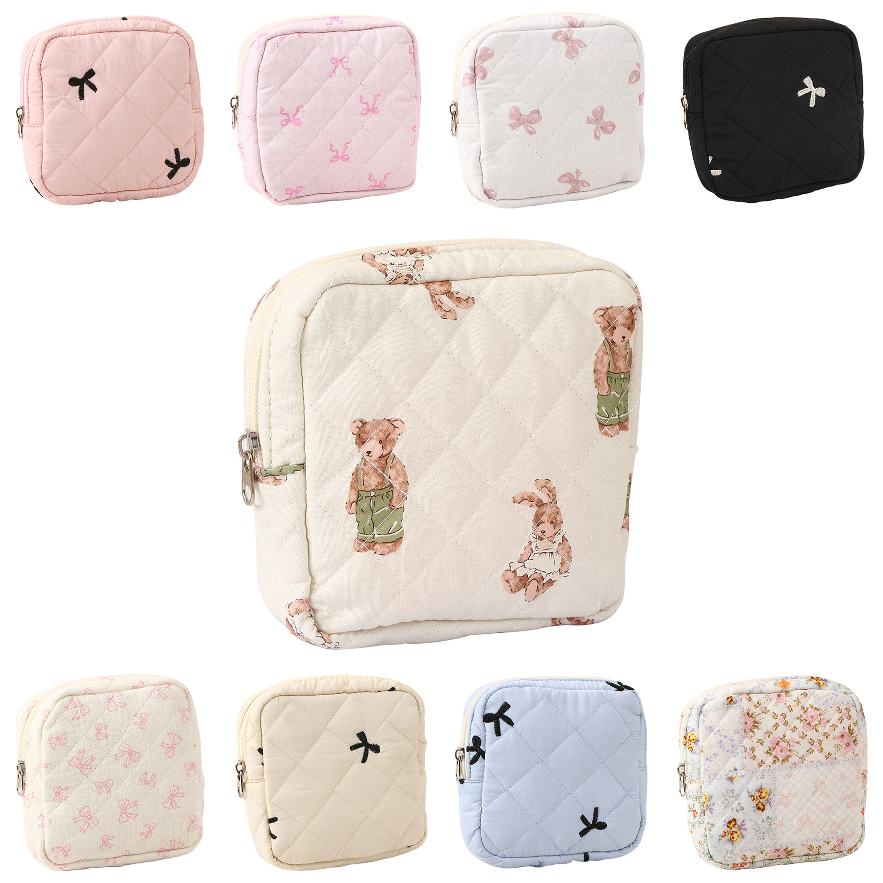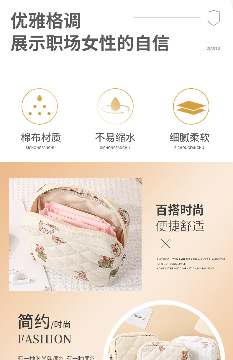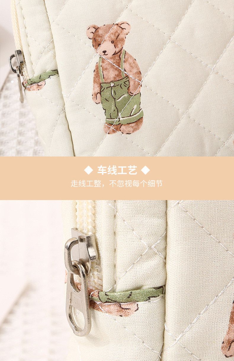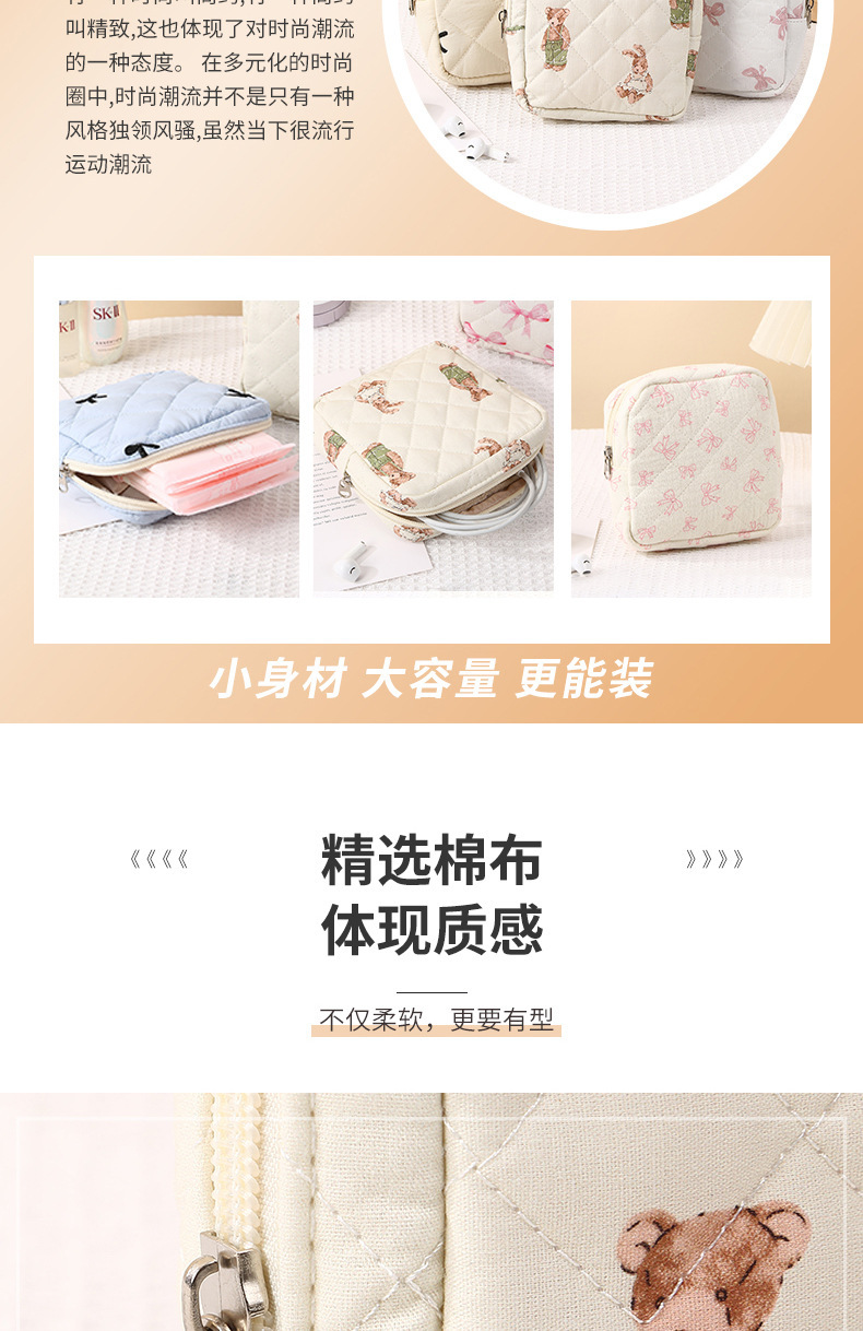 新しいキルティング加工のクマ柄花柄口紅入れ、イヤホン、データケーブル、小銭入れ、生理用品、化粧品、化粧ブラシ入れ