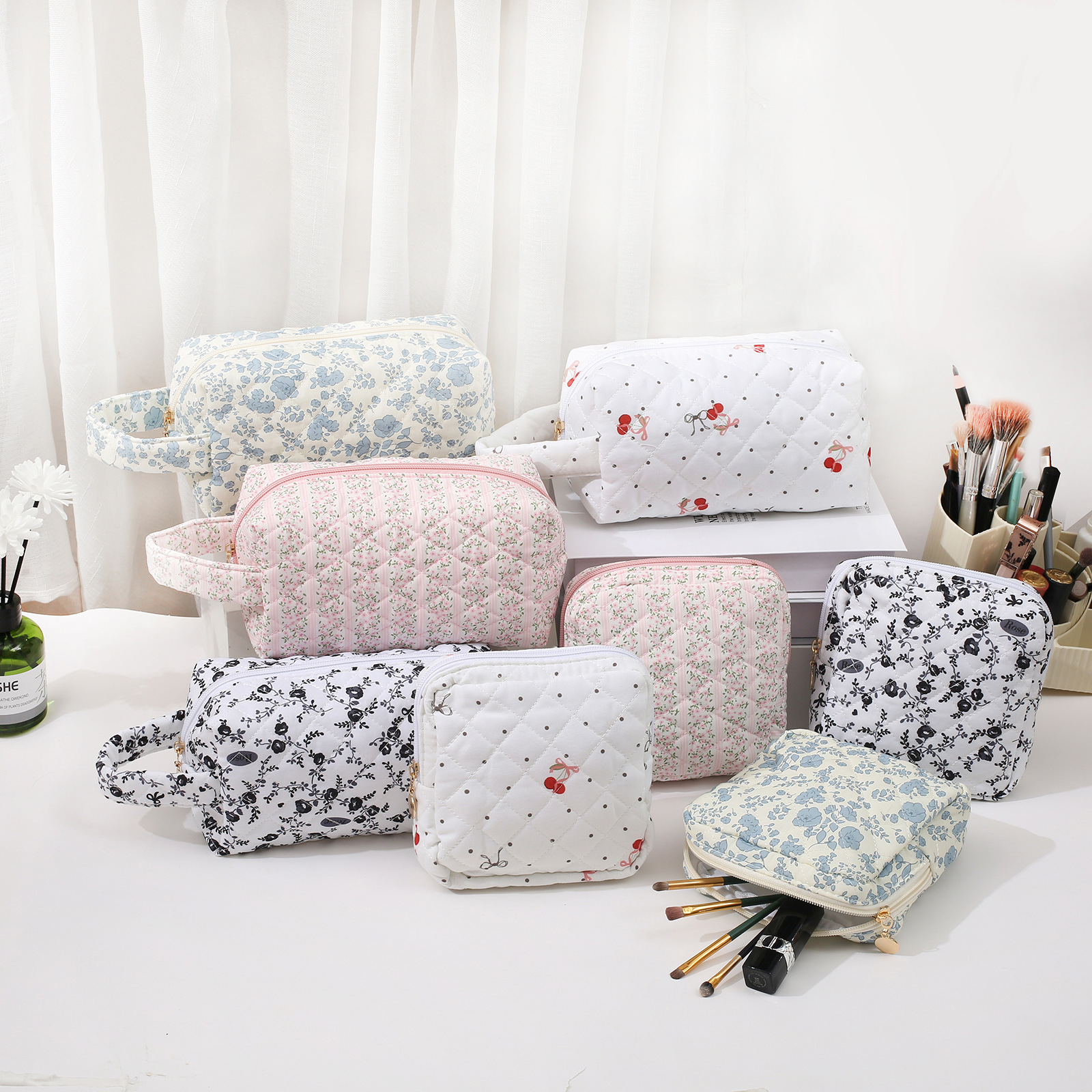 跨境泡泡棉碎花化妆包手提便携化妆品收纳包大容量ins旅行洗漱袋