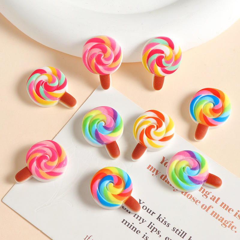 模擬虹色ロリポップ樹脂小物アクセサリー diy クリーム接着剤カップ冷蔵庫マグネット下駄バックルアクセサリー