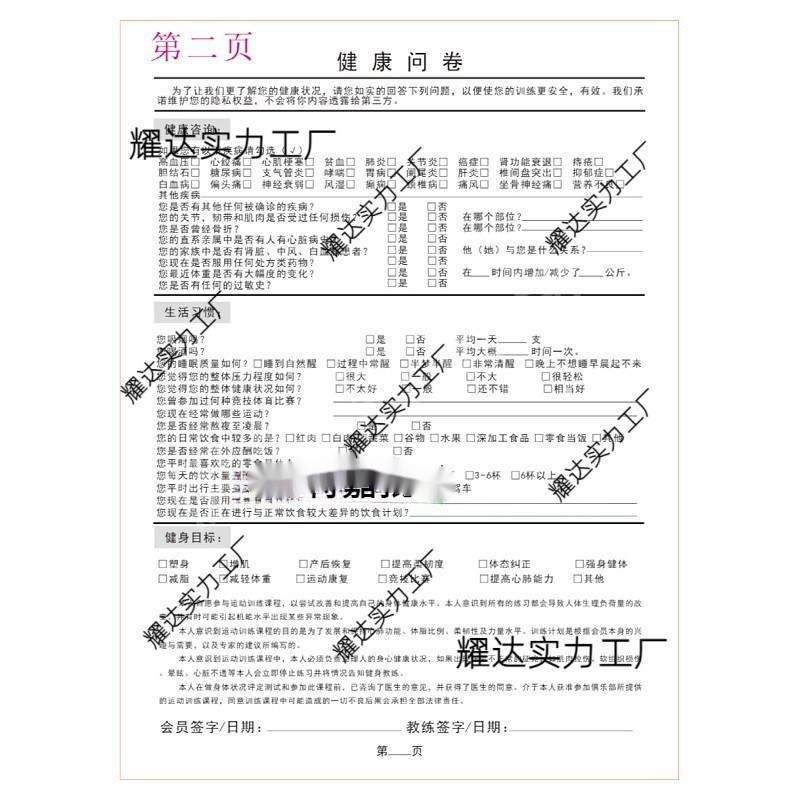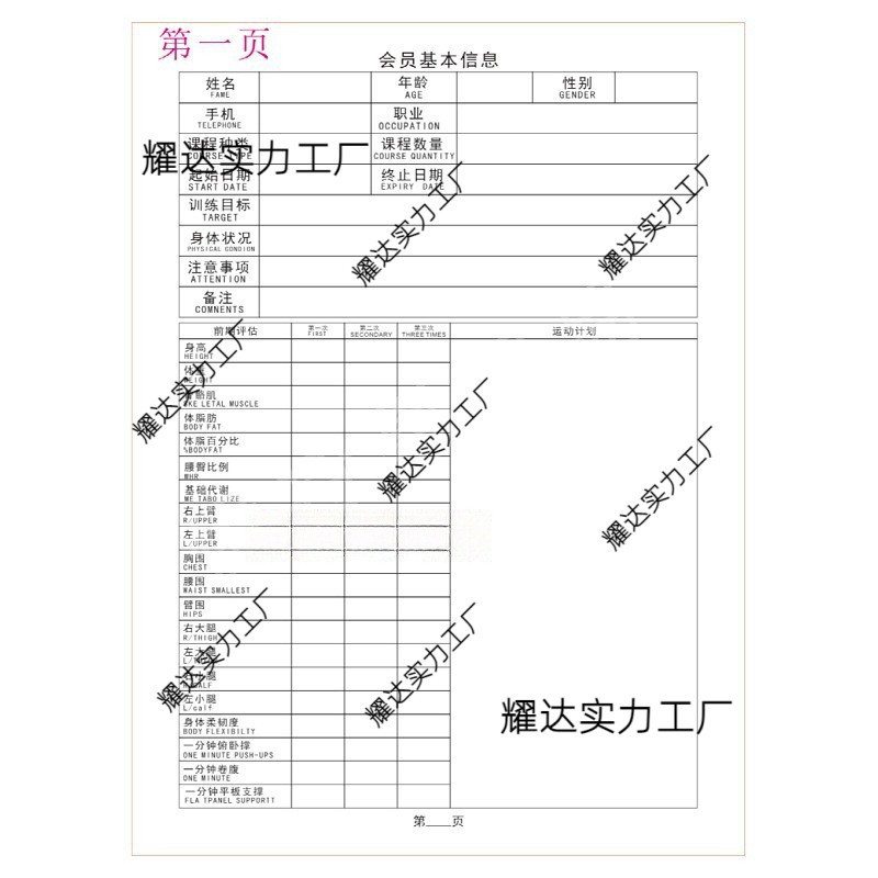パーソナルトレーニングプラン入門パーソナルトレーニングブック PTフィットネス学生ヨガインストラクター商業プロジェクト記録簿