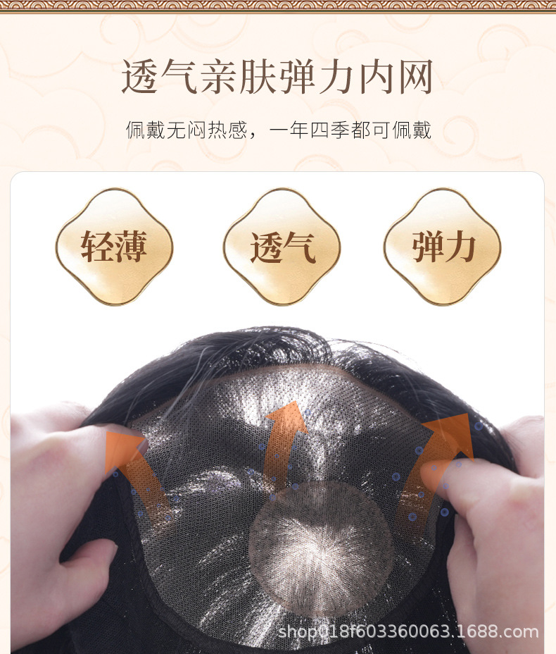 スイス製ウィッグピース 女性用 頭頂部用ヘアピース 白髪隠し 増毛 人毛 本物の人毛 薄くて手編みの人毛