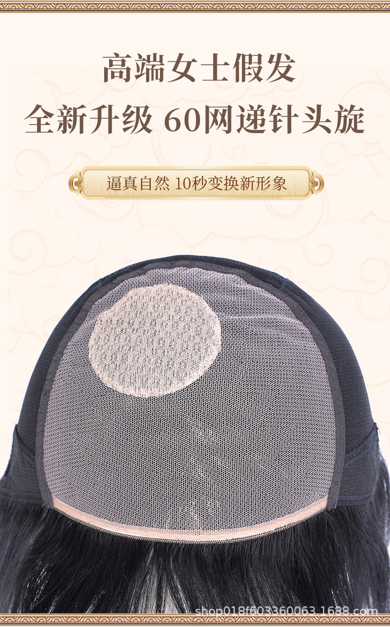 60ネットウィッグ 女性用毛髪ブロック 人毛100%手編み 薄毛隠し トップ部補修 軽量で通気性抜群 ふんわりとした人毛ウィッグ