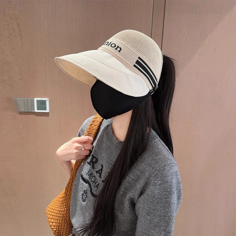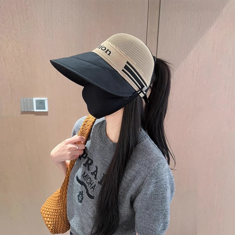 夏の新しいスタイルの女性用中空通気性フィッシャーマンハット、マスクを掛けることができ、屋外の日よけと日焼け止め、ポニーテールファッションひさしキャップ