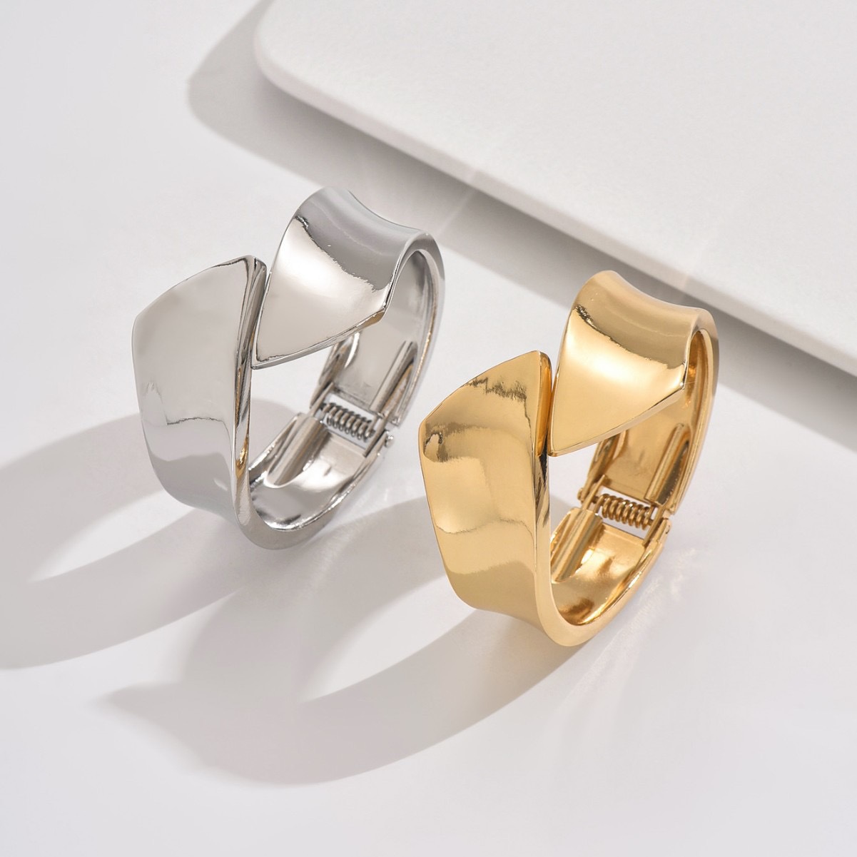 イレギュラー スプリング オープン ブレスレット - ゴールド,イレギュラー スプリング オープン ブレスレット - シルバー