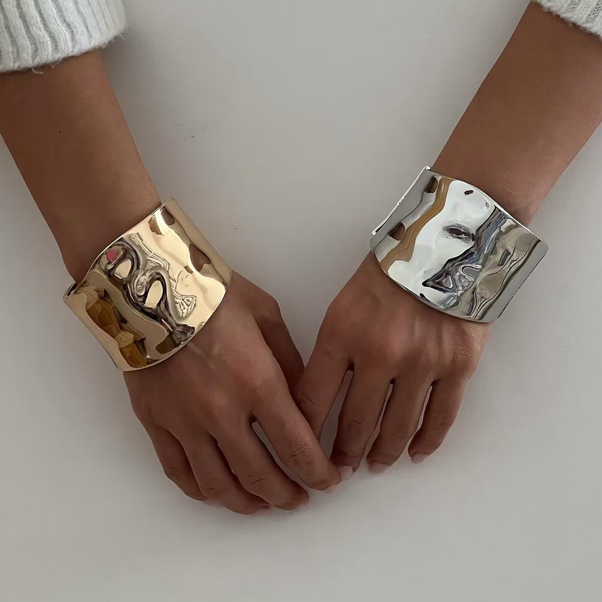 春のゴールドブレスレット夏ヨーロッパとアメリカの誇張されたハイエンドのパーソナライズされたワイドメタルブレスレット電気メッキ光沢のある合金ブレスレット
