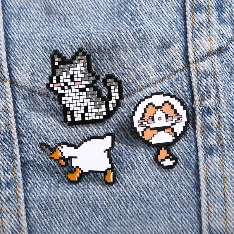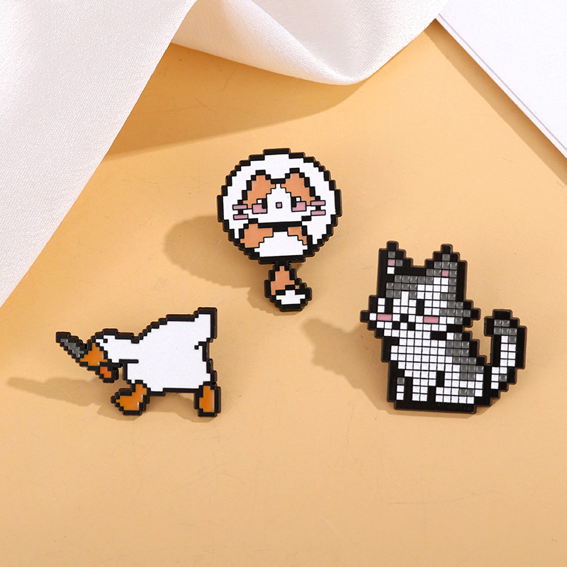 かわいい漫画ピクセル風小動物バッジpinアヒル子犬服装アクセサリーブローチ学生かばん装飾