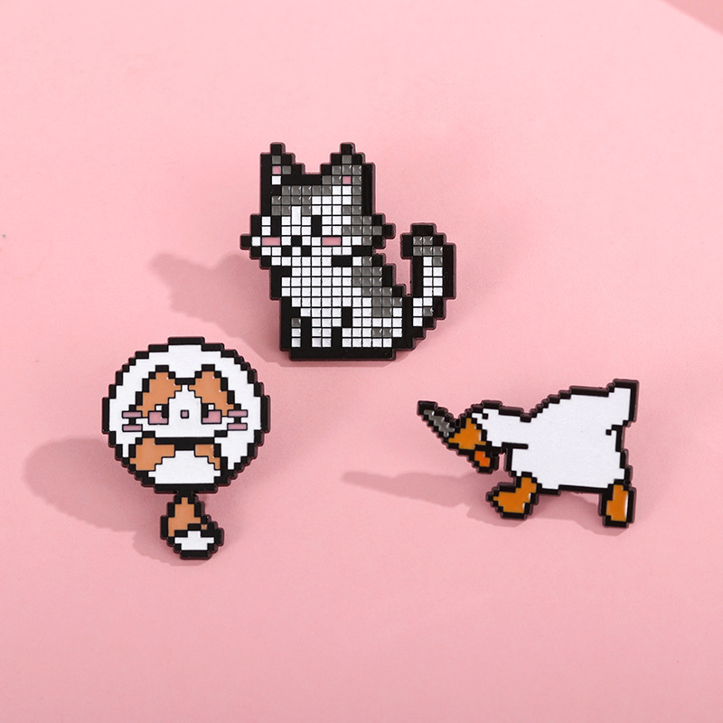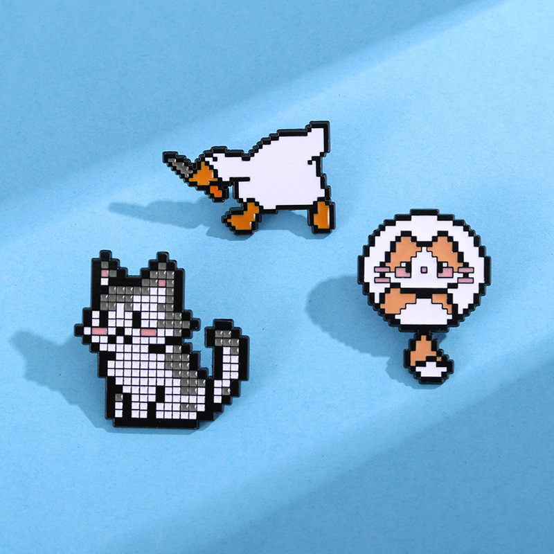 漫画ブローチピクセル風小動物かわいいかばん装飾品アヒルハスキー子犬子猫合金バッジ