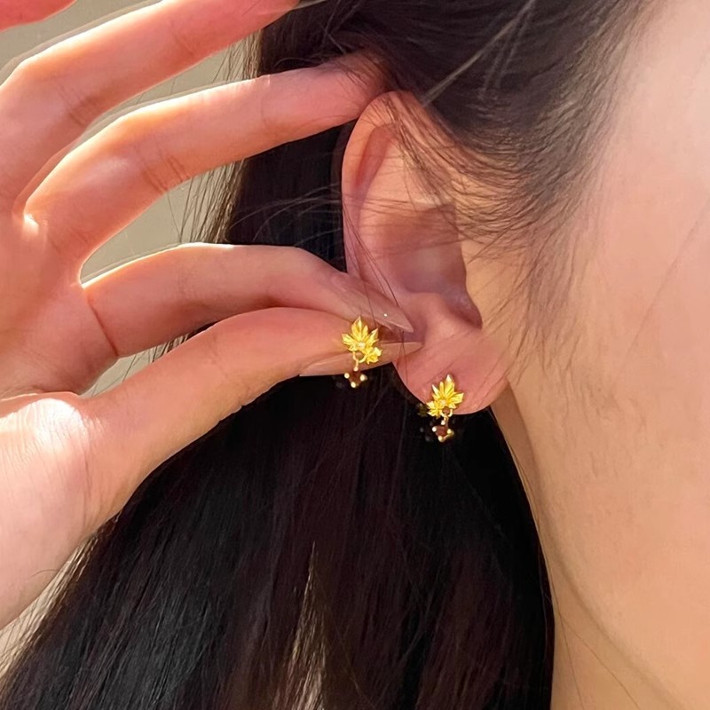 紅葉のイヤリング 女性用 ライトラグジュアリー ニッチデザイン タッセル付き レッドジルコニア 赤い紅葉のイヤリング 花柄 ゴールドの葉のイヤリング