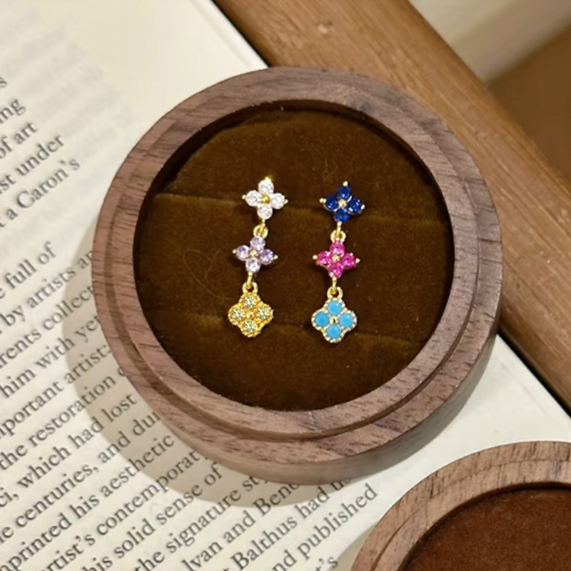 小红书爆款幸运四叶草耳钉女款小众多巴胺设计感ins花朵耳环耳饰