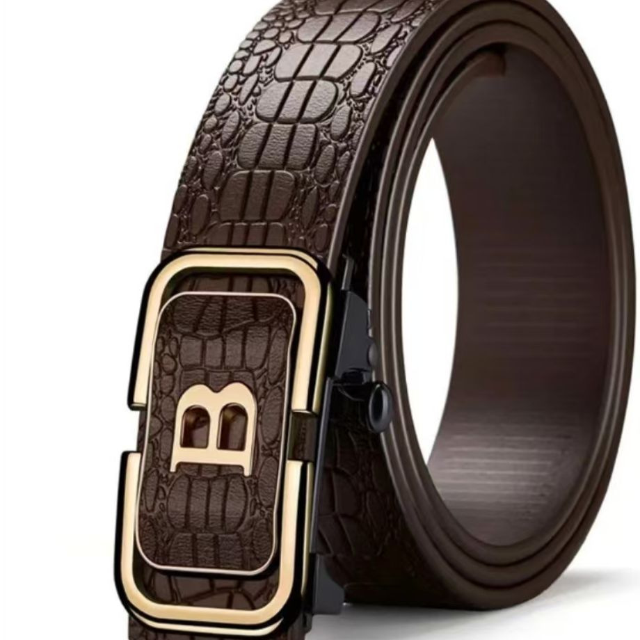 ベルトメンズ高級感高級合金自動バックル牛革エンボスベルトシンプルカジュアル男性式ズボンベルト現物