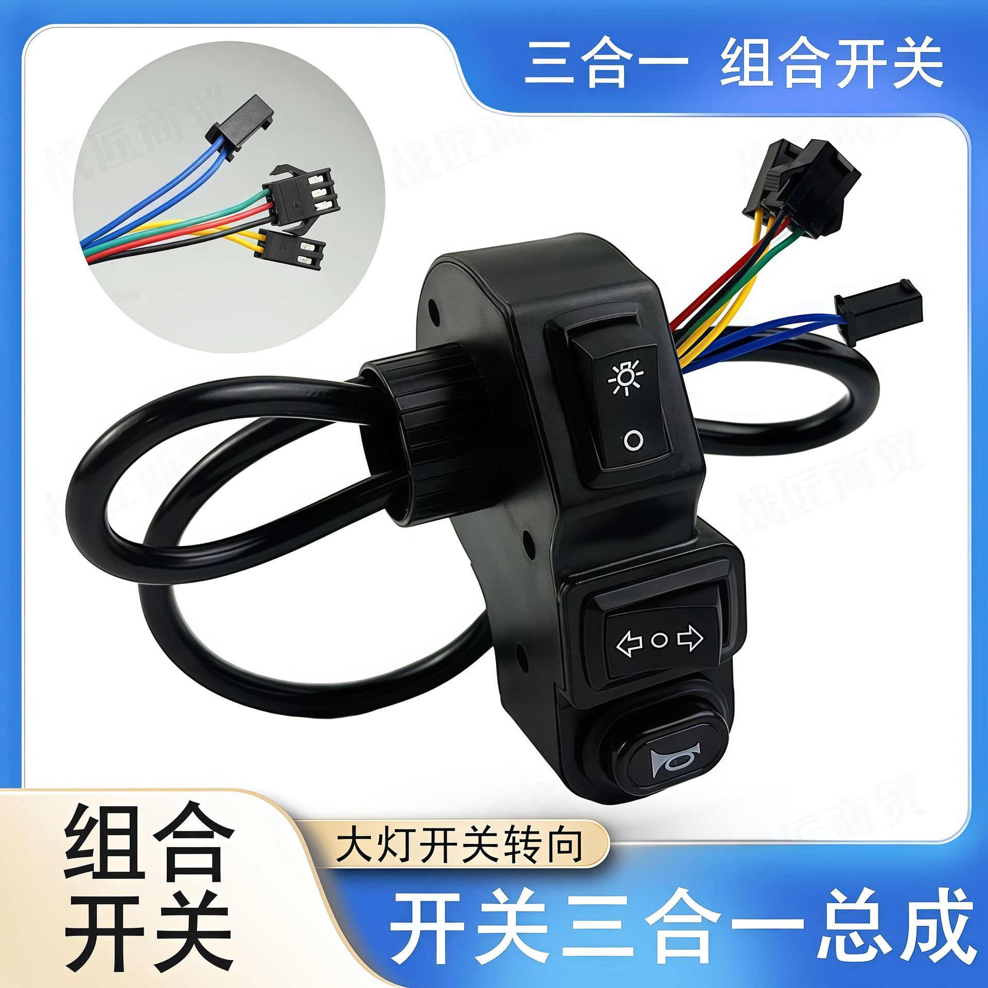 电瓶车电动车多功能组合开关两三轮车喇叭大灯转向三合一开关