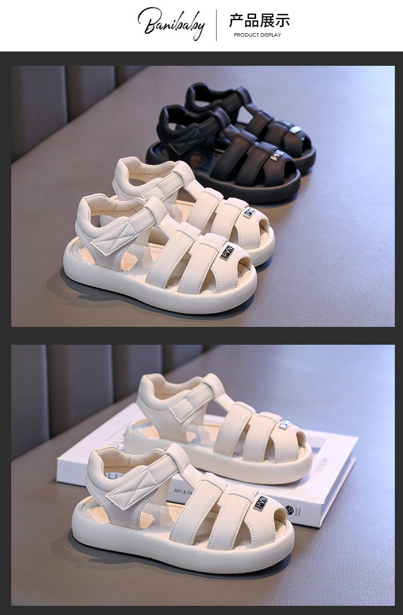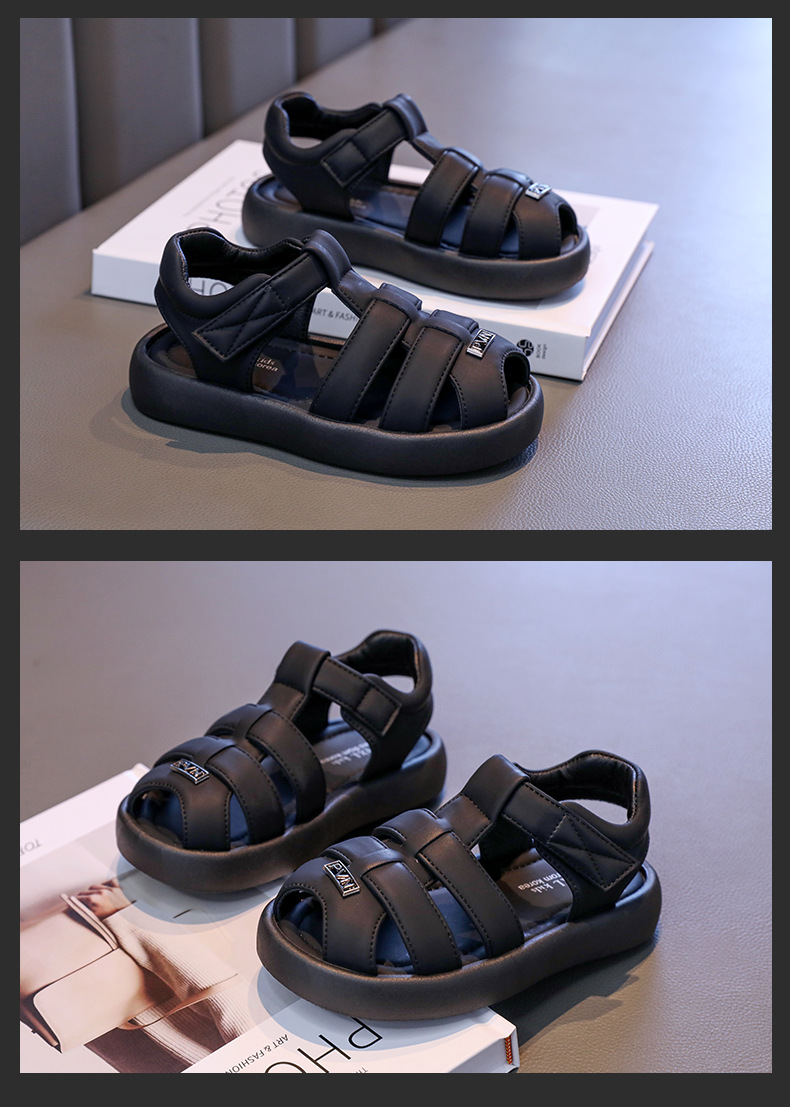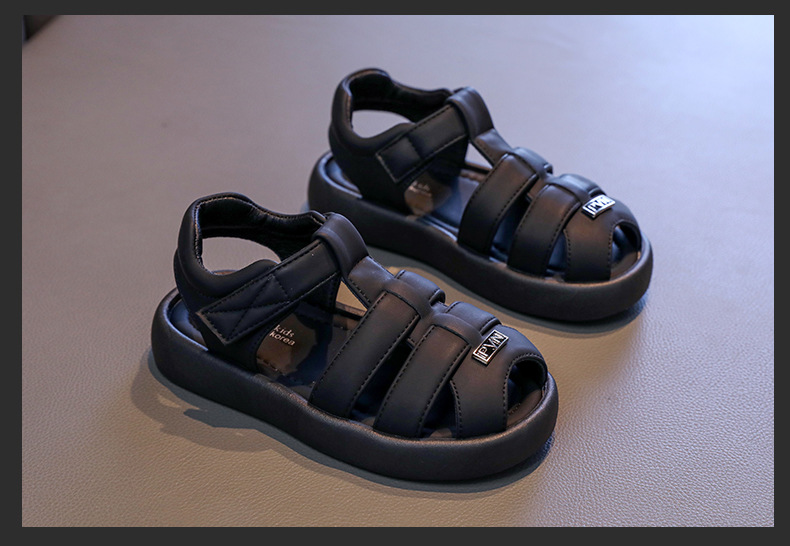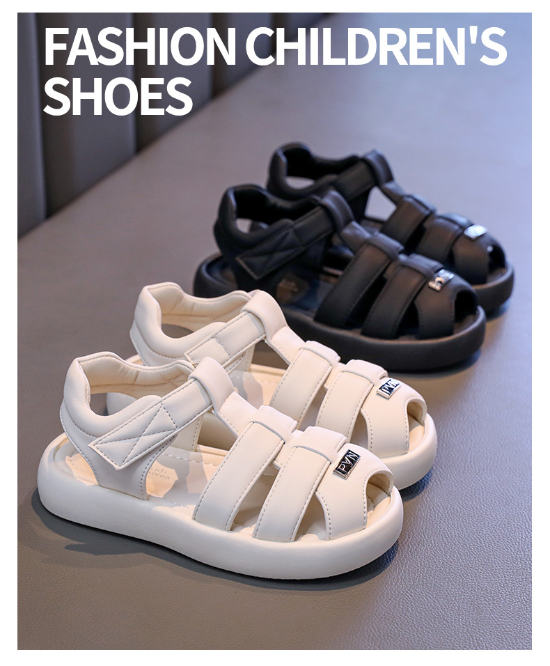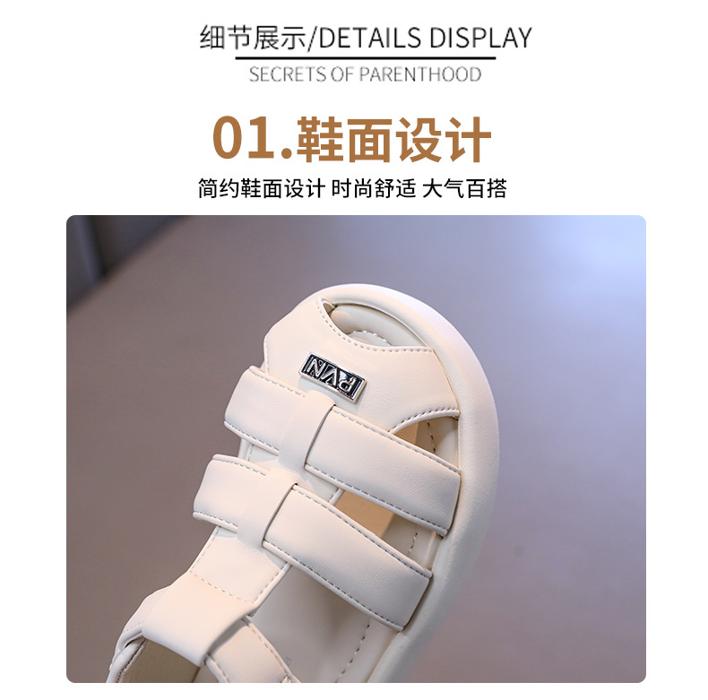 子供の包頭サンダル2025夏の新型滑り止めの厚い底のビーチシューズの女の子の透かし彫りのファッションのローマのサンダル