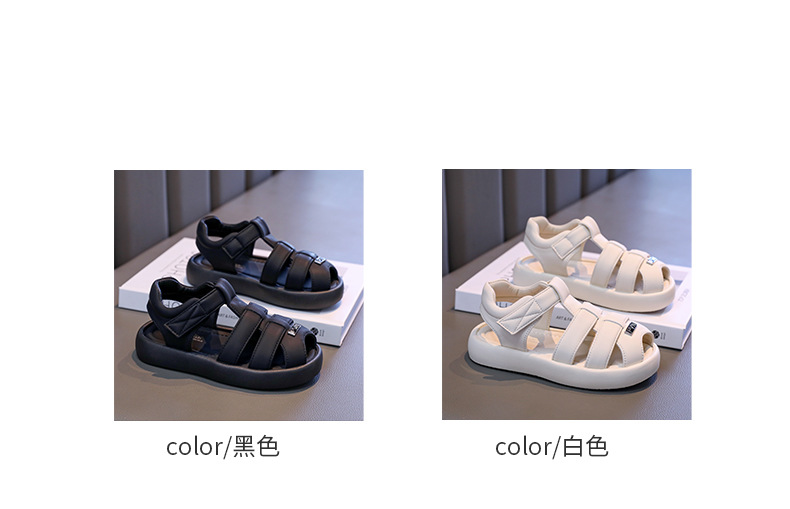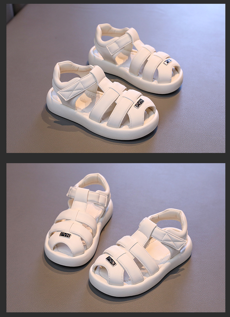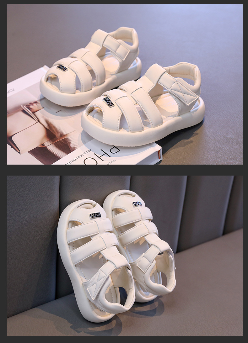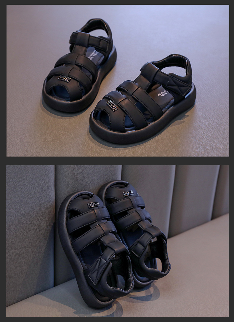 子供の包頭サンダル2025夏の新型滑り止めの厚い底のビーチシューズの女の子の透かし彫りのファッションのローマのサンダル