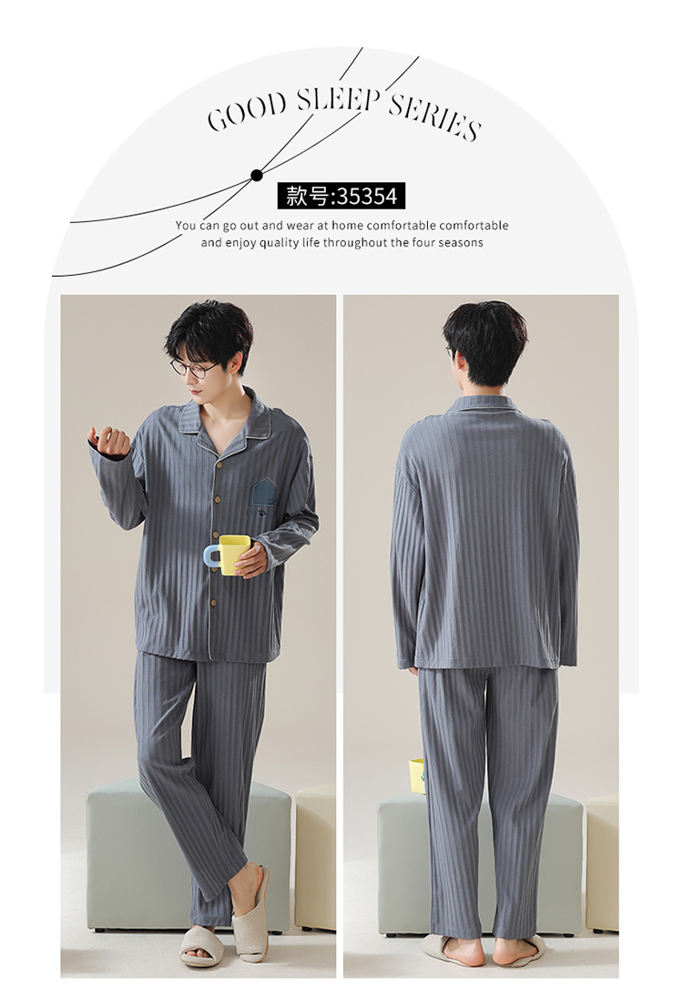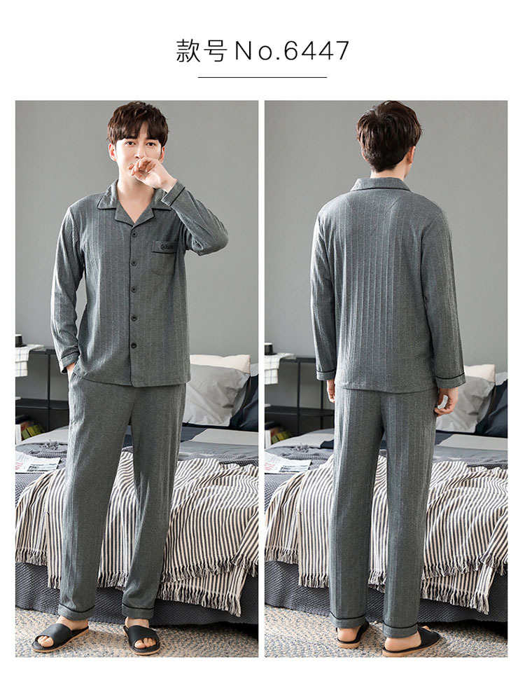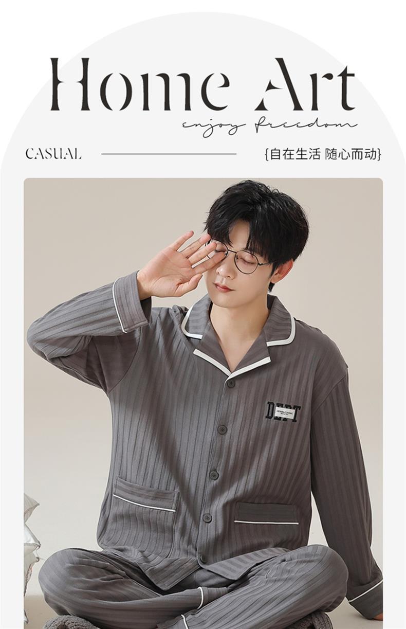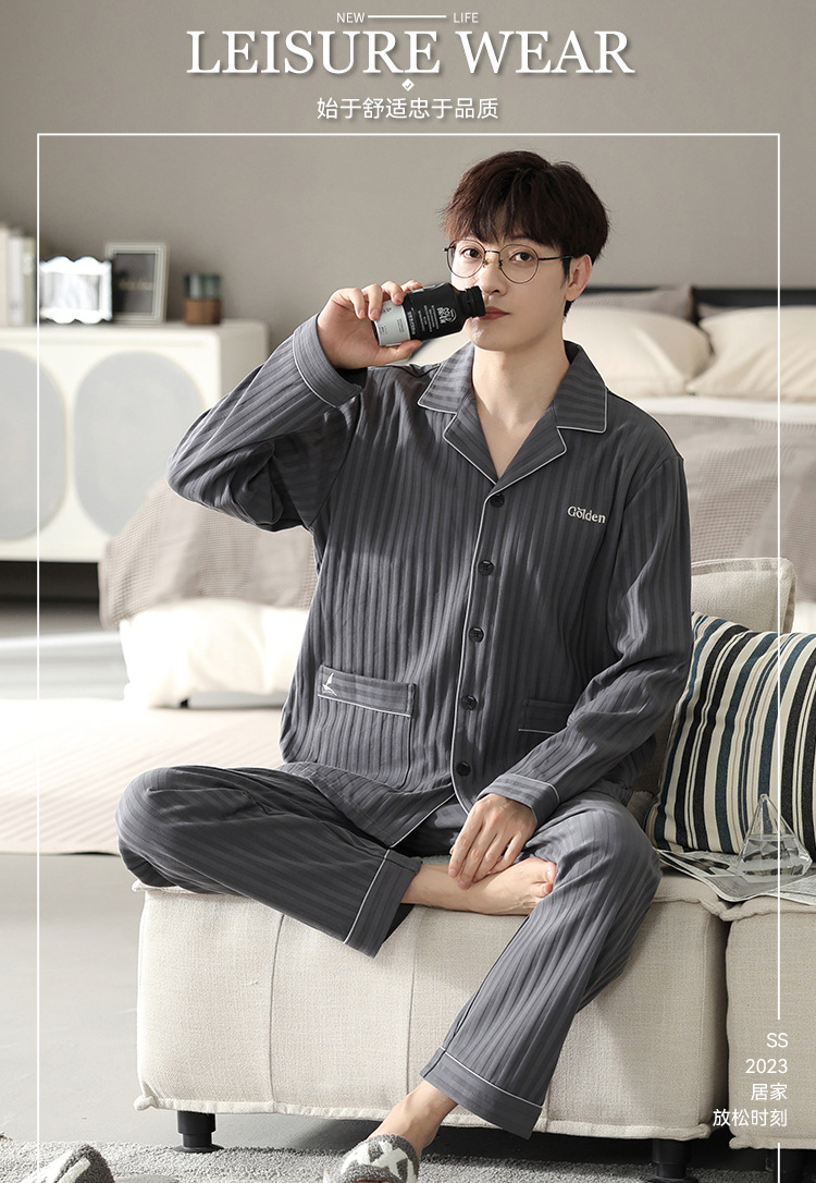 パジャマメンズ長袖ズボン春秋春秋純綿大きいサイズカーディガンホームウェアメンズ新作スーツ