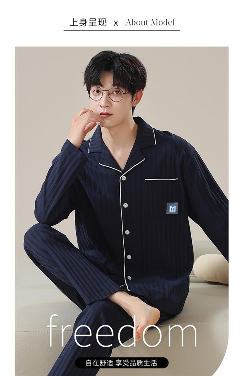 メンズパジャマメンズ春秋新作秋純綿長袖ホーム服メンズ秋冬薄手スーツ