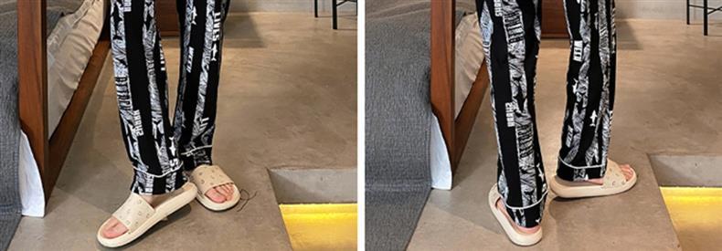 男性用パジャマ3点セット、夏用純綿半袖ズボンセット、薄手の夏用漫画大きいサイズのホーム服