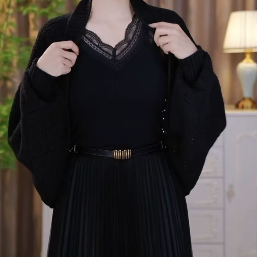 新款秋冬针织密织方格披肩保暖百搭时尚气质开衫洋气外镂空礼服