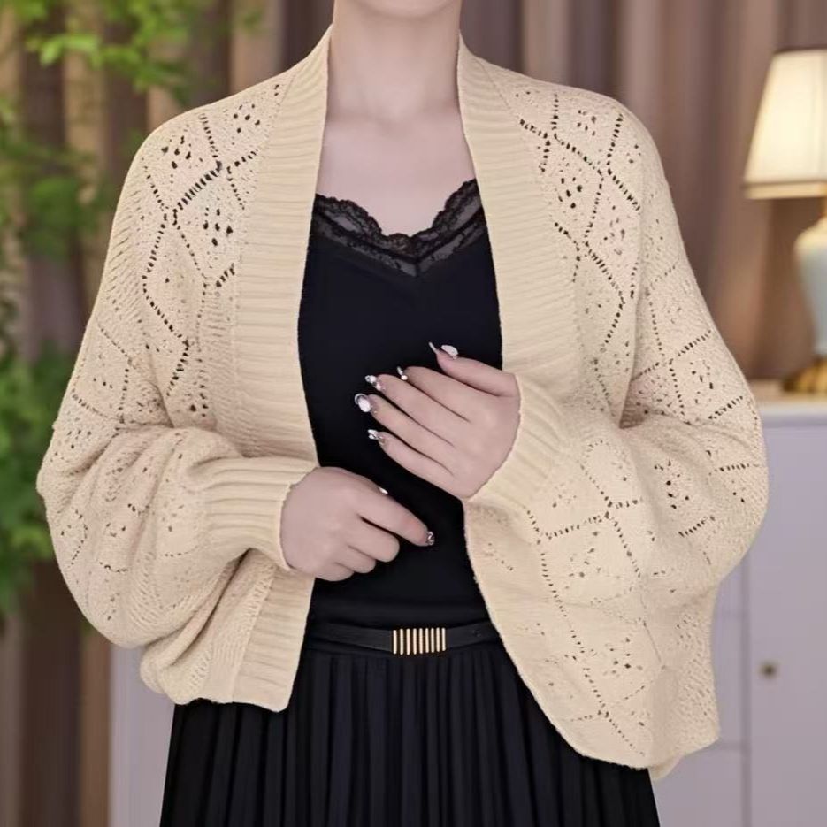春夏の新型菱格の透かし彫りの保温のマントはファッションの気質のカーディガンの洋風の外でメリヤスのカジュアルな復古を掛けます。