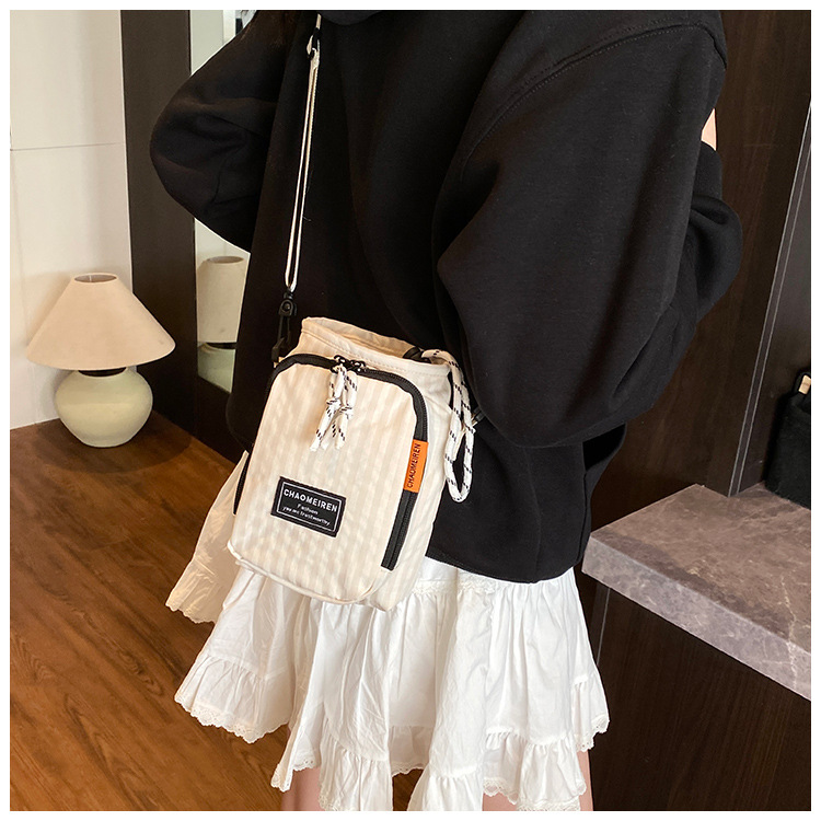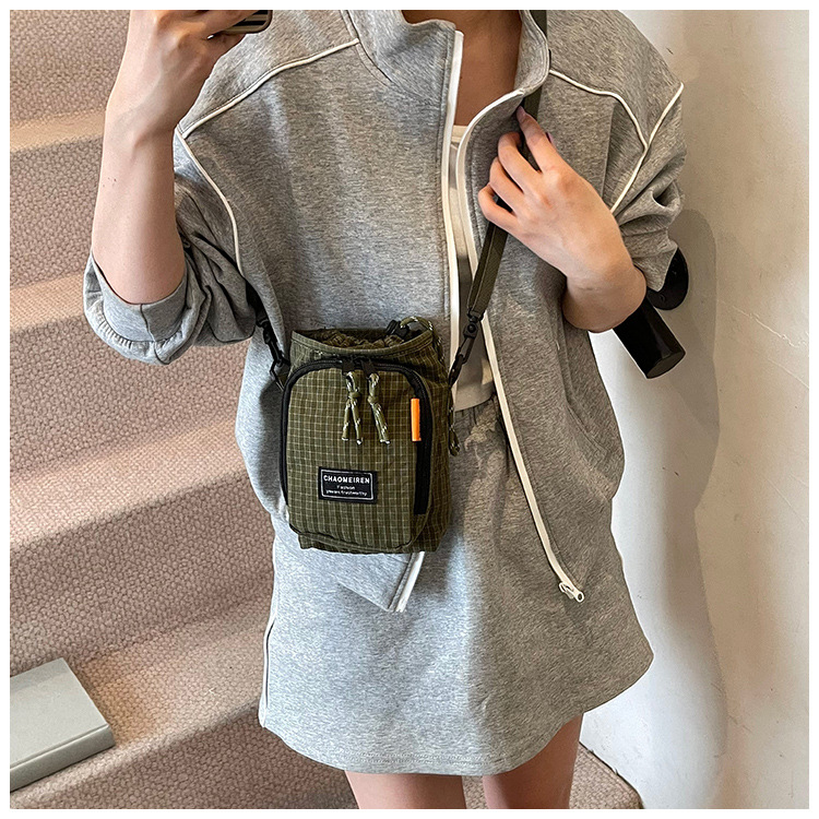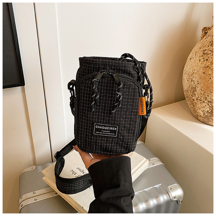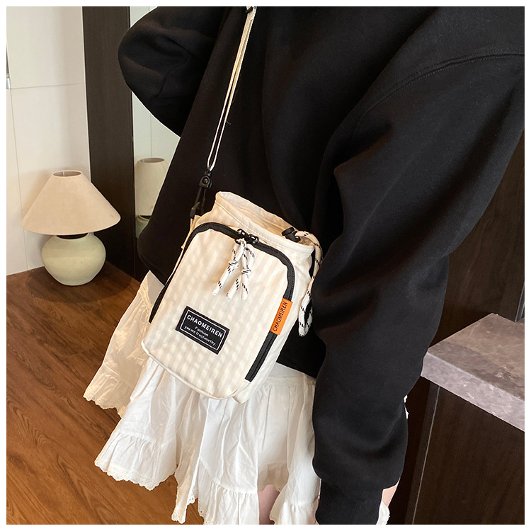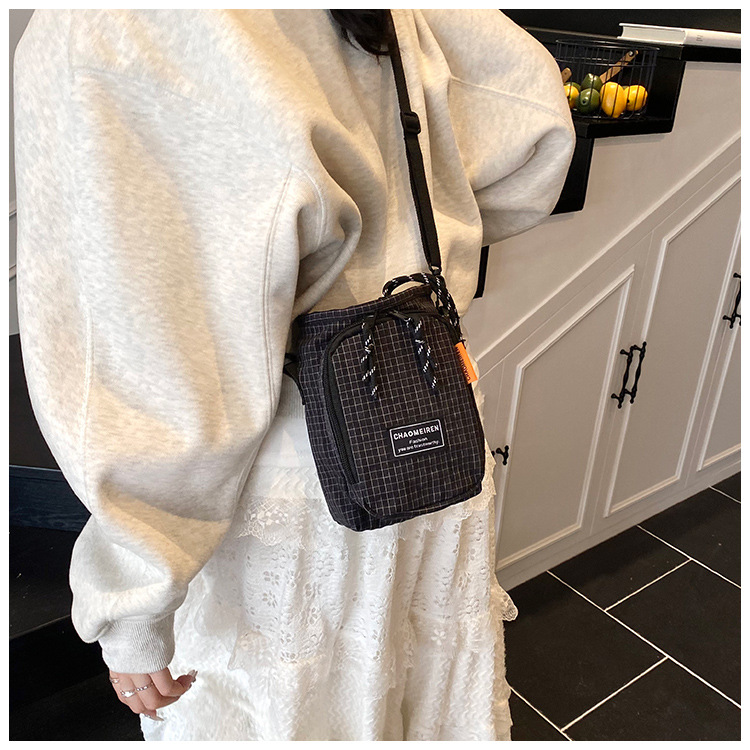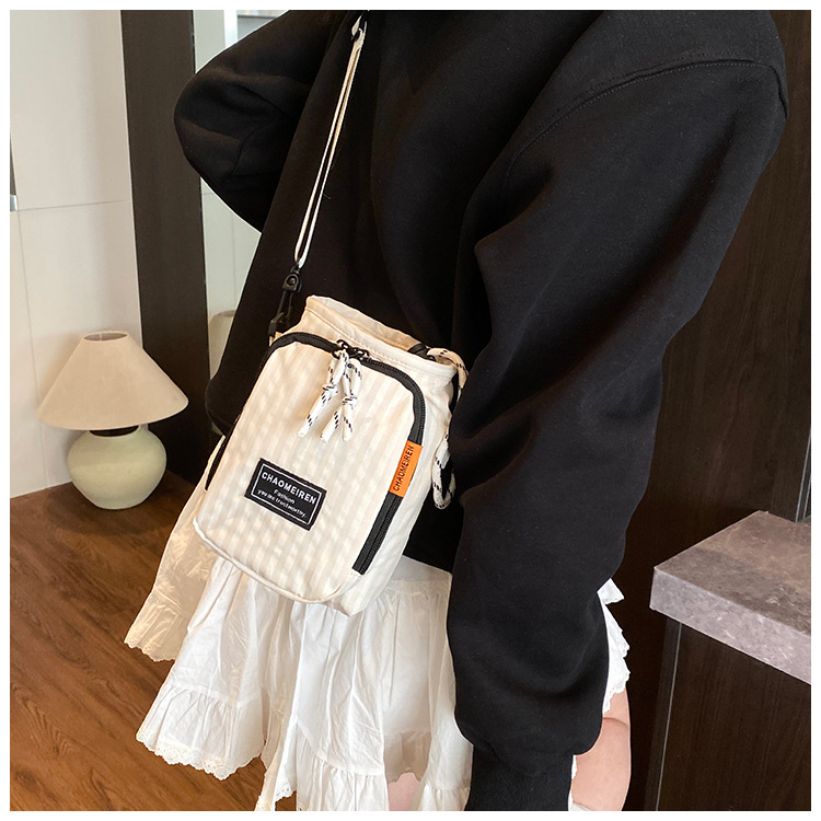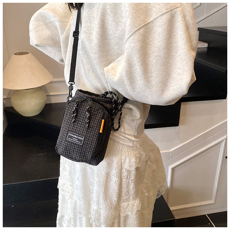 小衆韓国カジュアル格子縞シンプルな斜め掛けカジュアルファッション男女カジュアルシングル肩飾り小銭バッグ