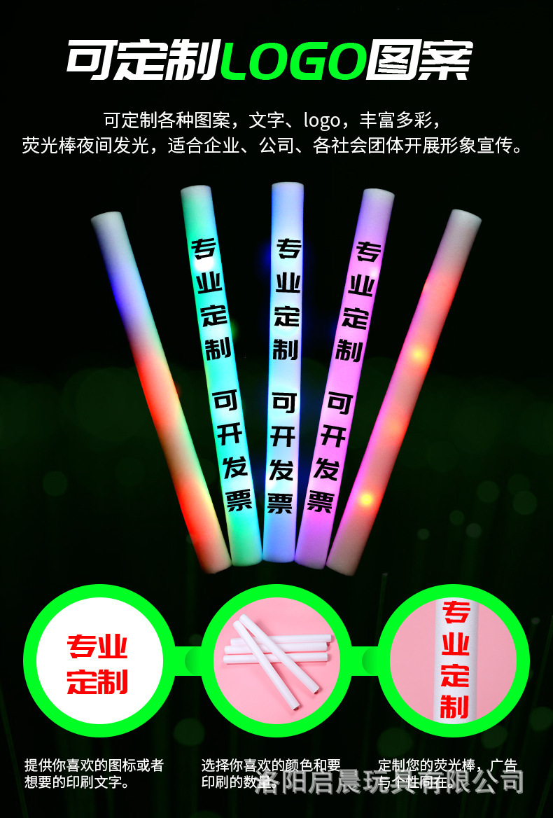 カラフルな蛍光スティックスポンジ蛍光スティック発泡発光スティックバー応援小道具フラッシュスティック卸売
